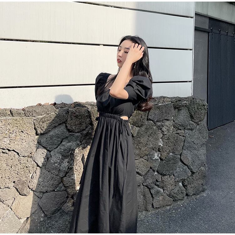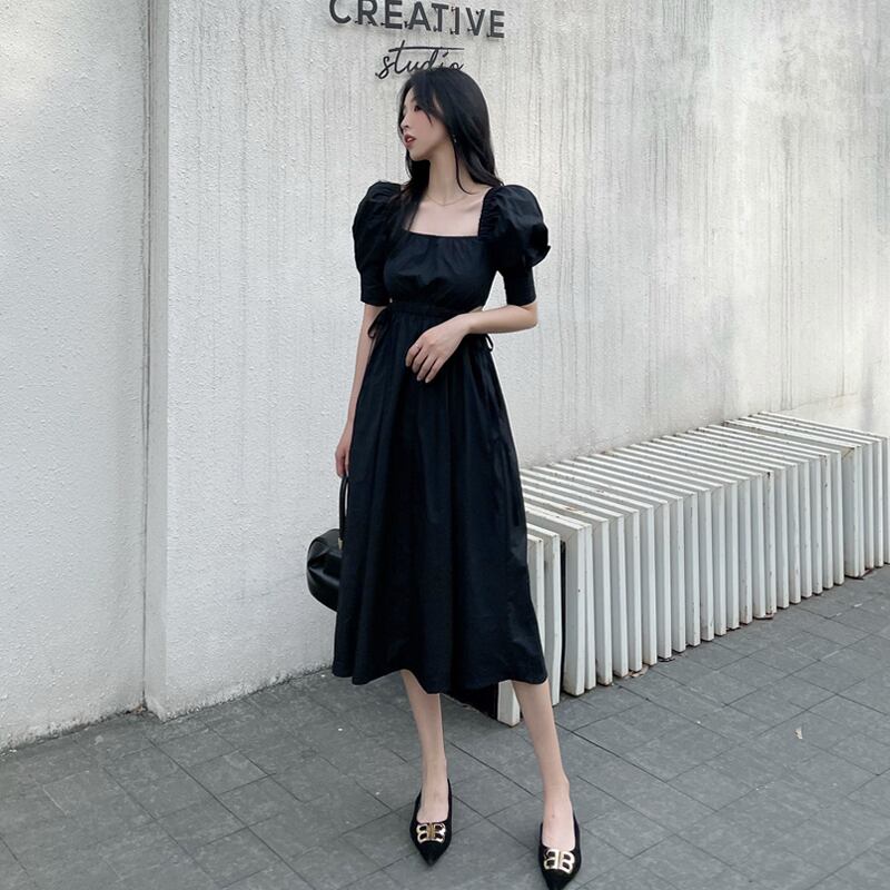 スリーブブラックドレス スタイルウェスト スクウェア Xiaofeijia71132252823