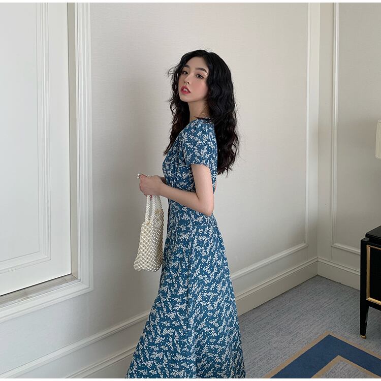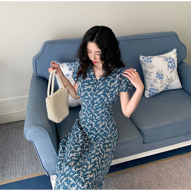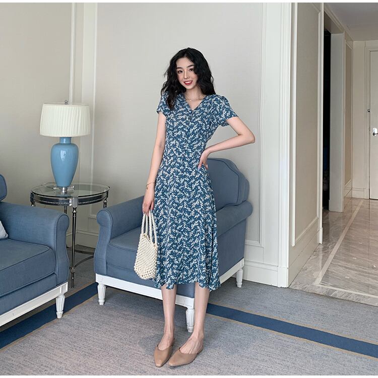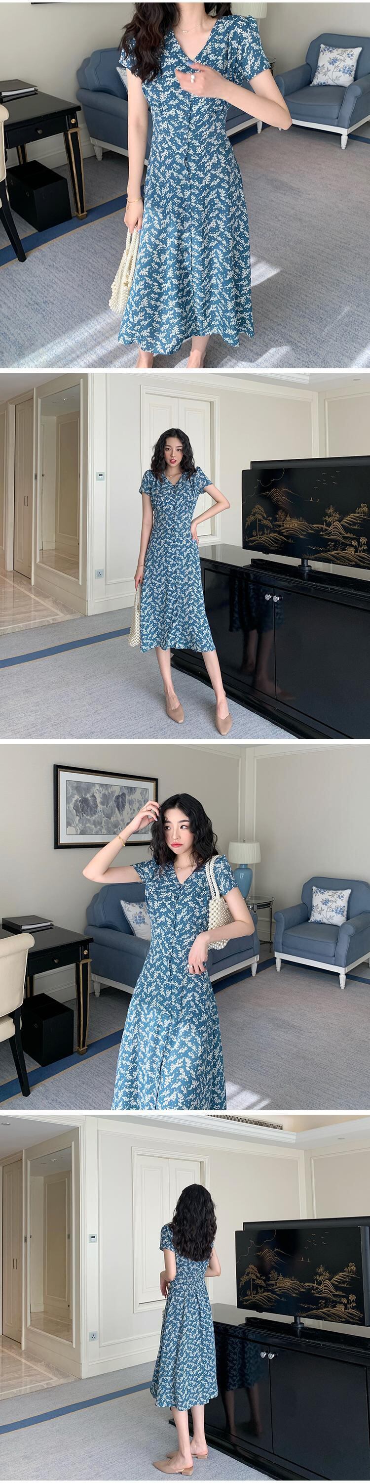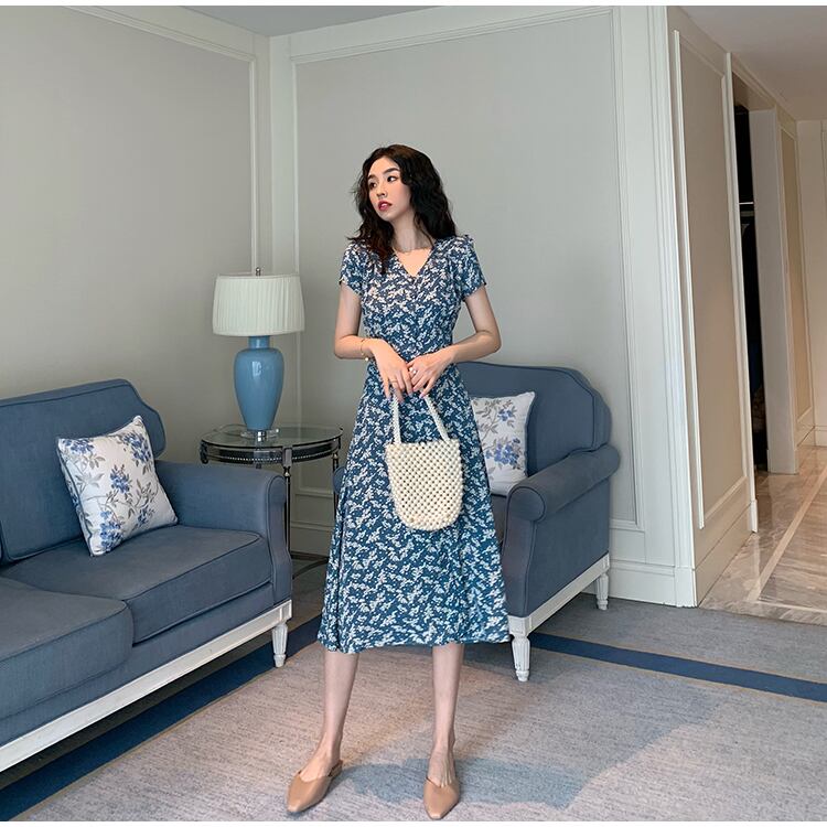 薄手Vネックフローラルスカート スリムドレス 花柄 Xiaofeijia68987364469