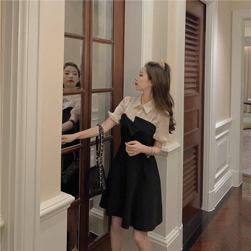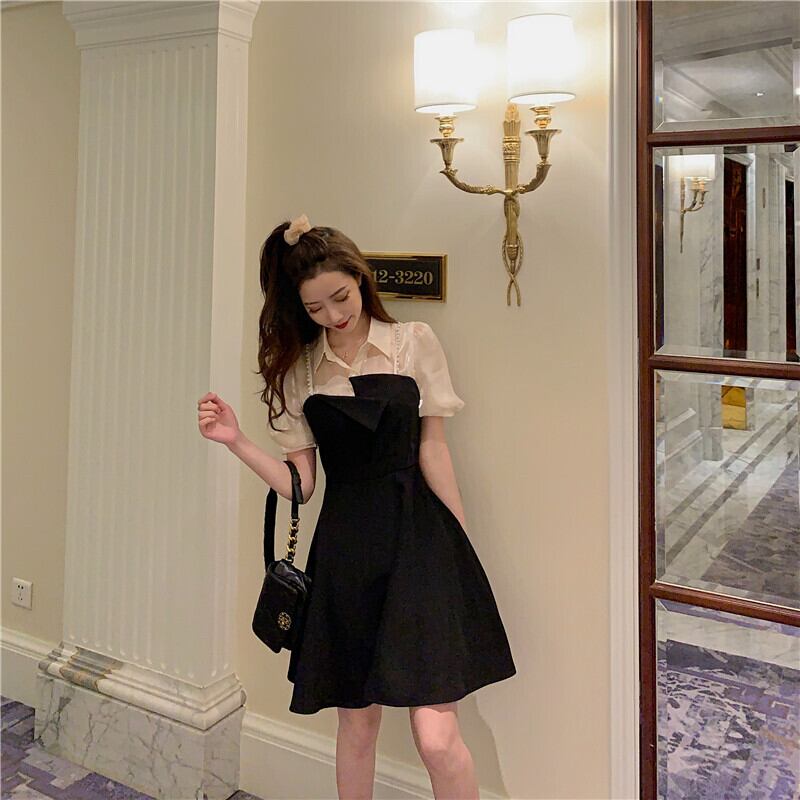 スリーブブラックドレス サマーウェストショート 夏物 Xiaofeijia26598584746