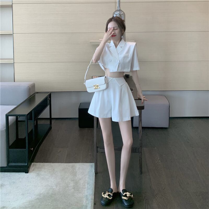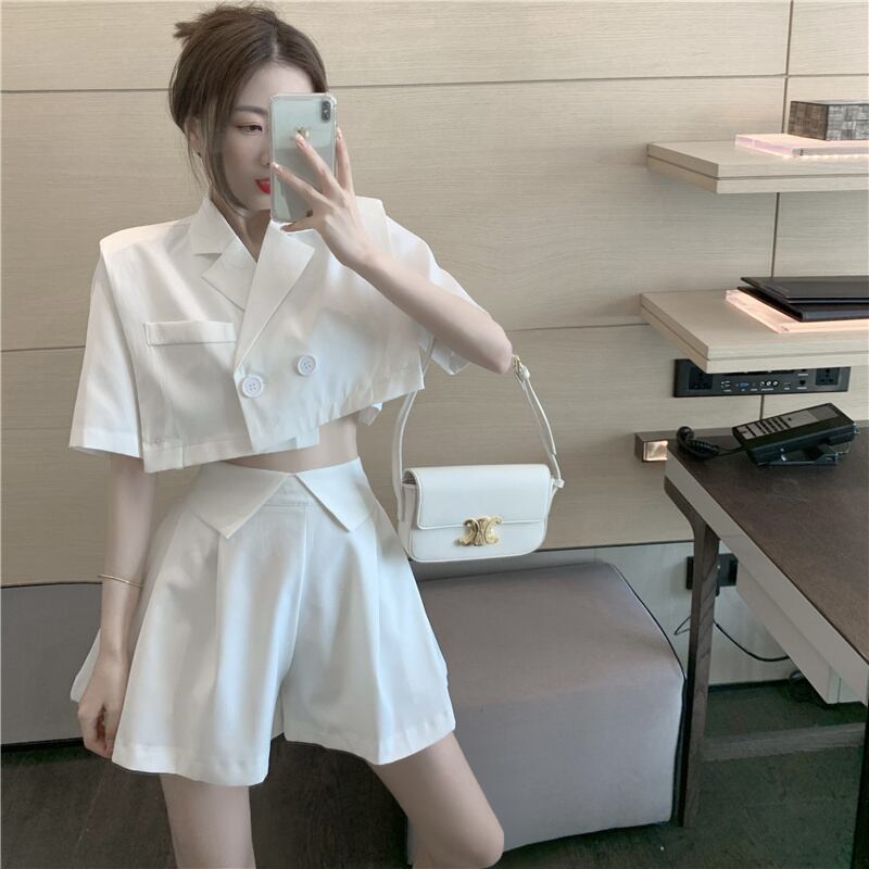 ショートジャケット 薄手プリーツワイドレッグレディース ワイドパンツ Xiaofeijia85993343735