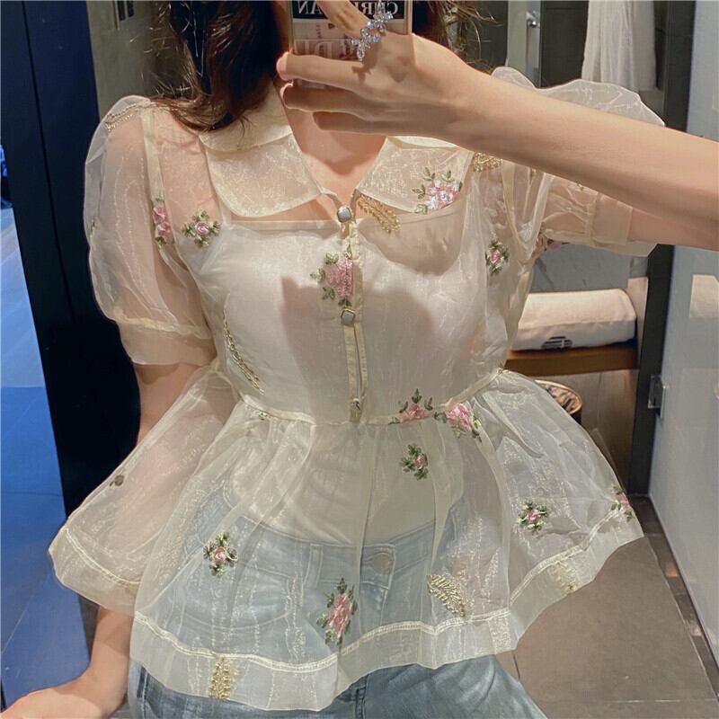 サマー刺繍ウェストトップス 夏物 Xiaofeijia34586831199