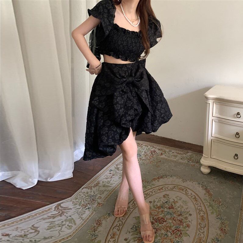 スタイルストレッチトップス スカート リボン エラスティック 伸縮 Xiaofeijia30432381317
