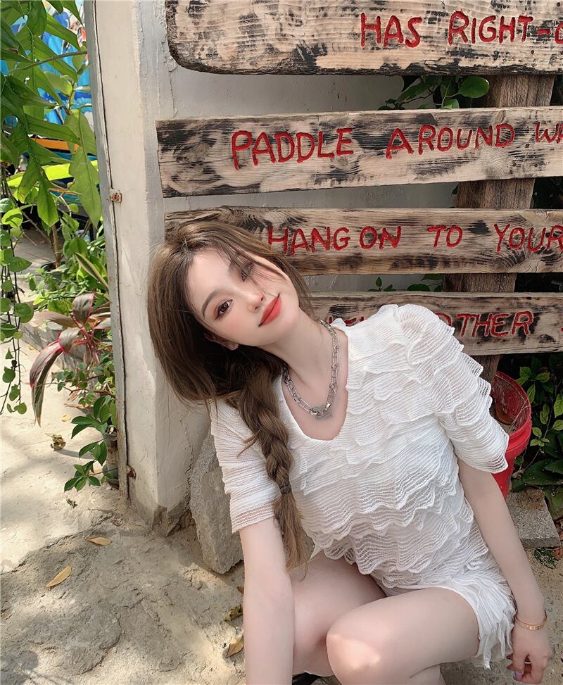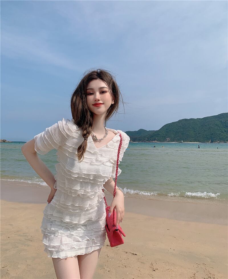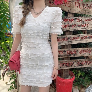 サマースタイルVネックドレス スリムスカート レッド 夏物 Xiaofeijia21999756312