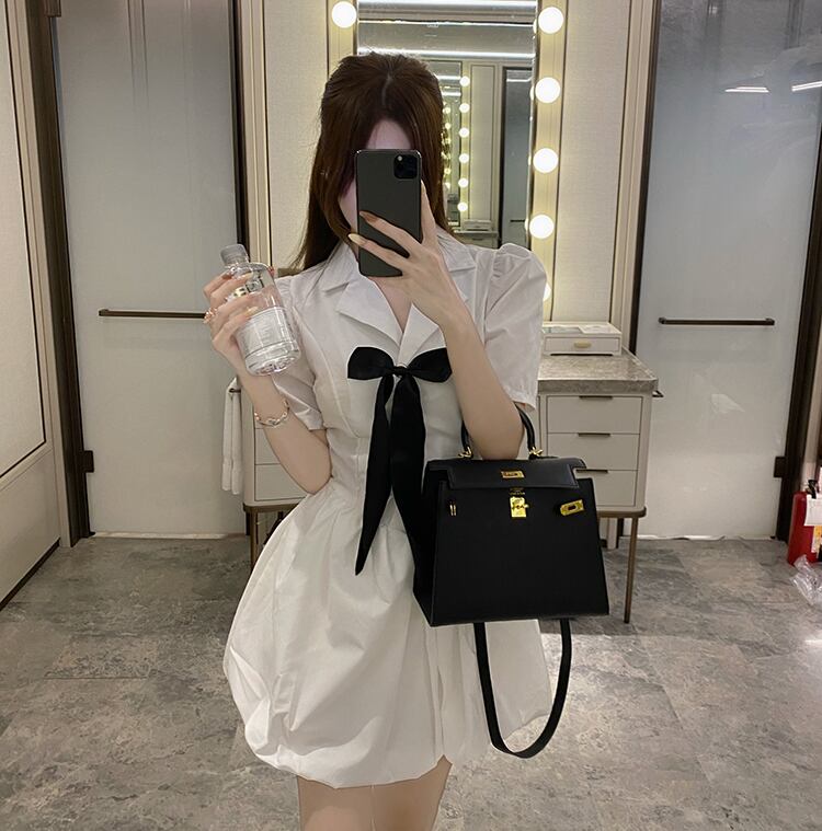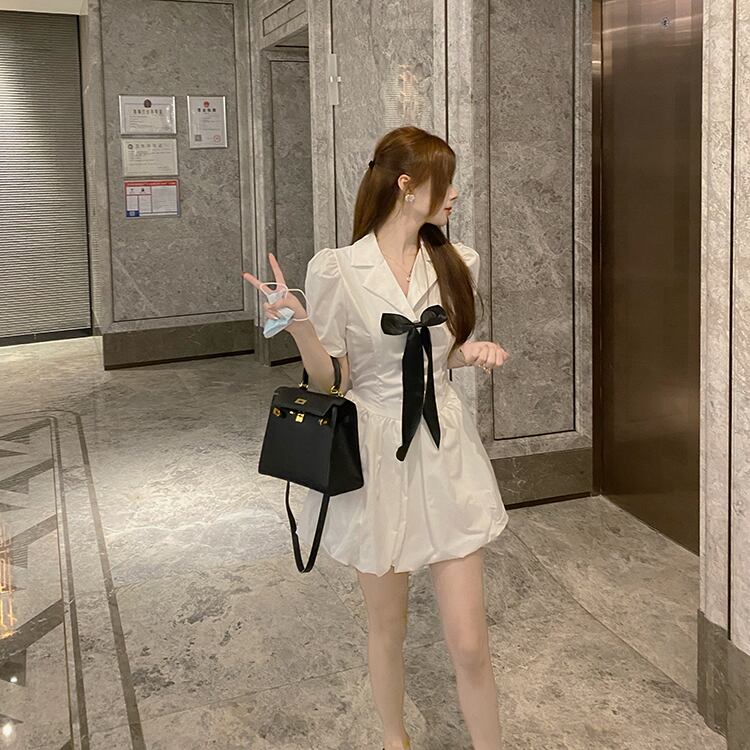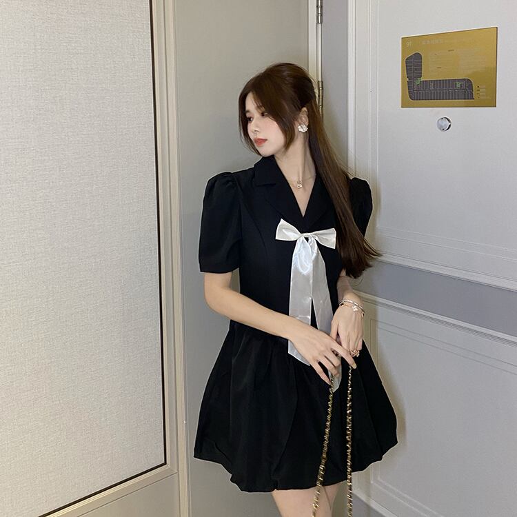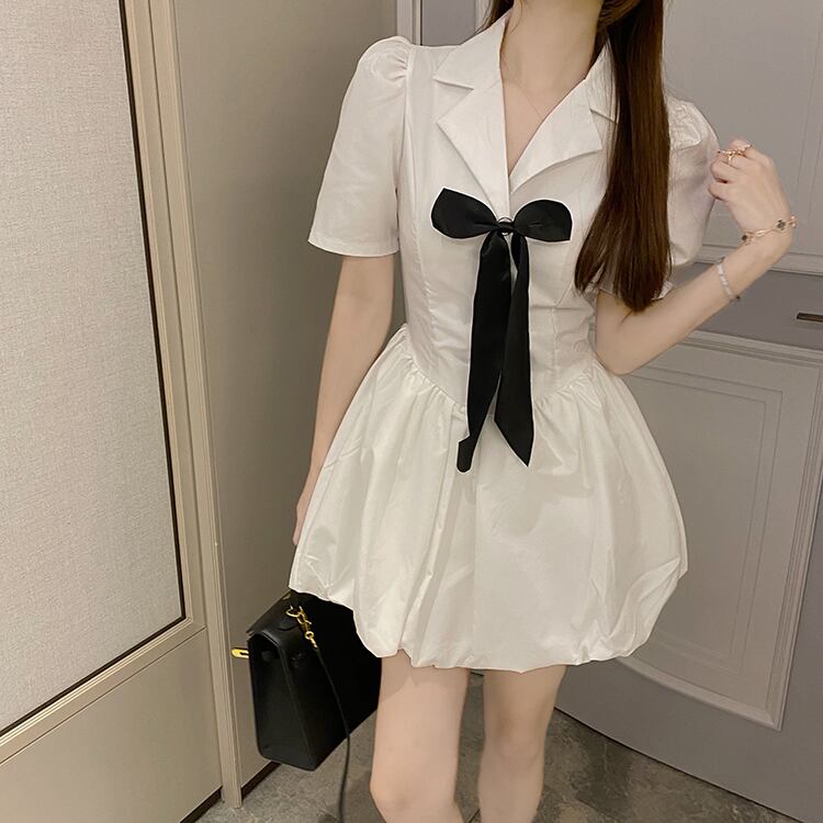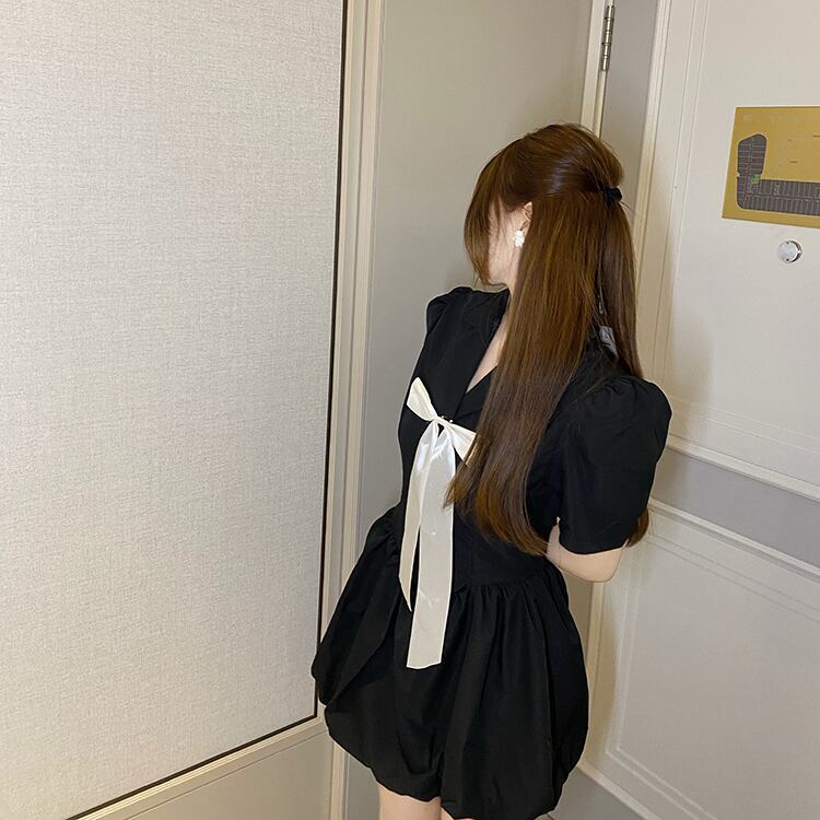 ウェストスリムリボン半袖スリーブドレス ショート ハーフスリーブ Xiaofeijia30835563963