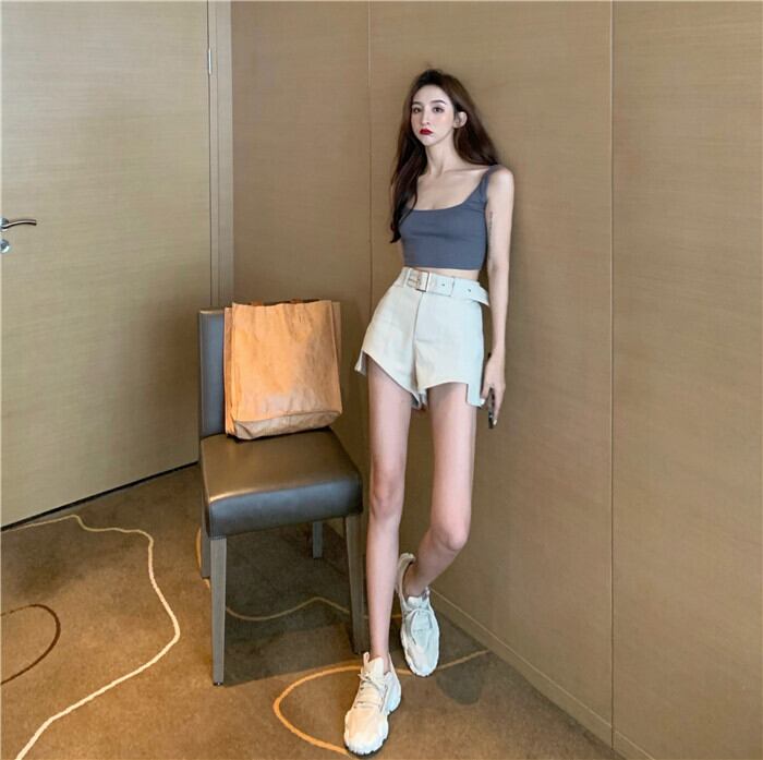スタイルショーツ カジュアルパンツ レディースサマーハイウェストウェストワイドレッグ薄手 夏物 ブルマー ワイドパンツ Xiaofeijia9154593054