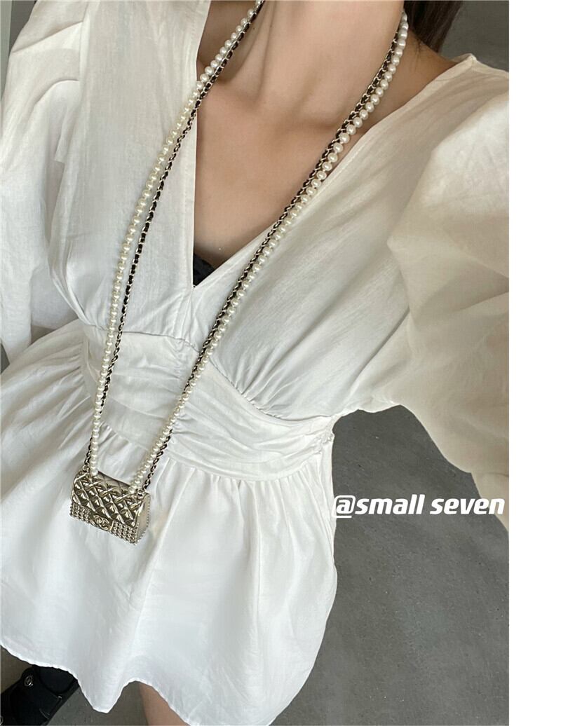 スリーブプリーツウェストソリッド カラードレス ストリート ソリッドカラー Xiaofeijia59775203713
