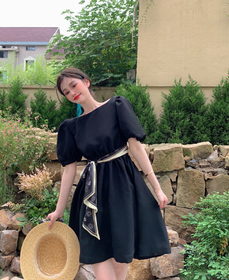 ホルタークロススカーフ バンドスリーブAラインショートドレス シルク Xiaofeijia66032944877
