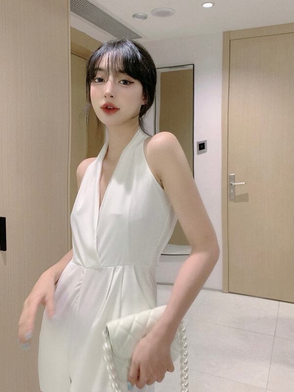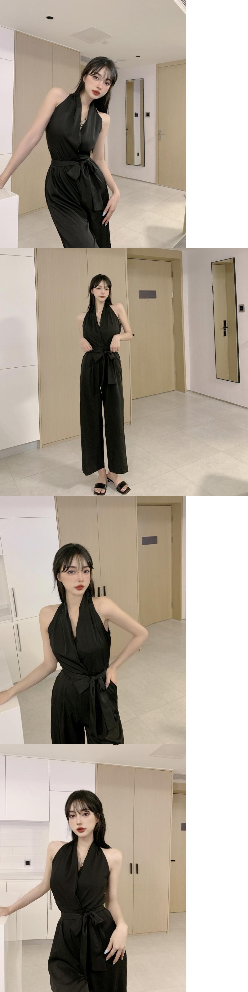 ホルタージャンプスーツ オールインワン Vネックサマーカジュアルハイウェスト 夏物 Xiaofeijia78514414645