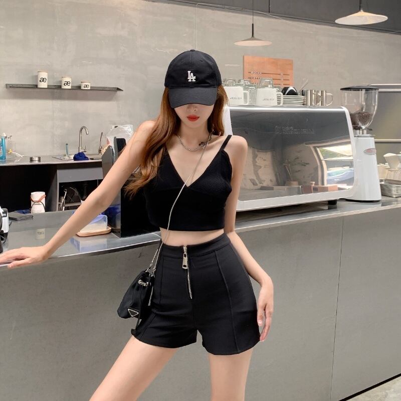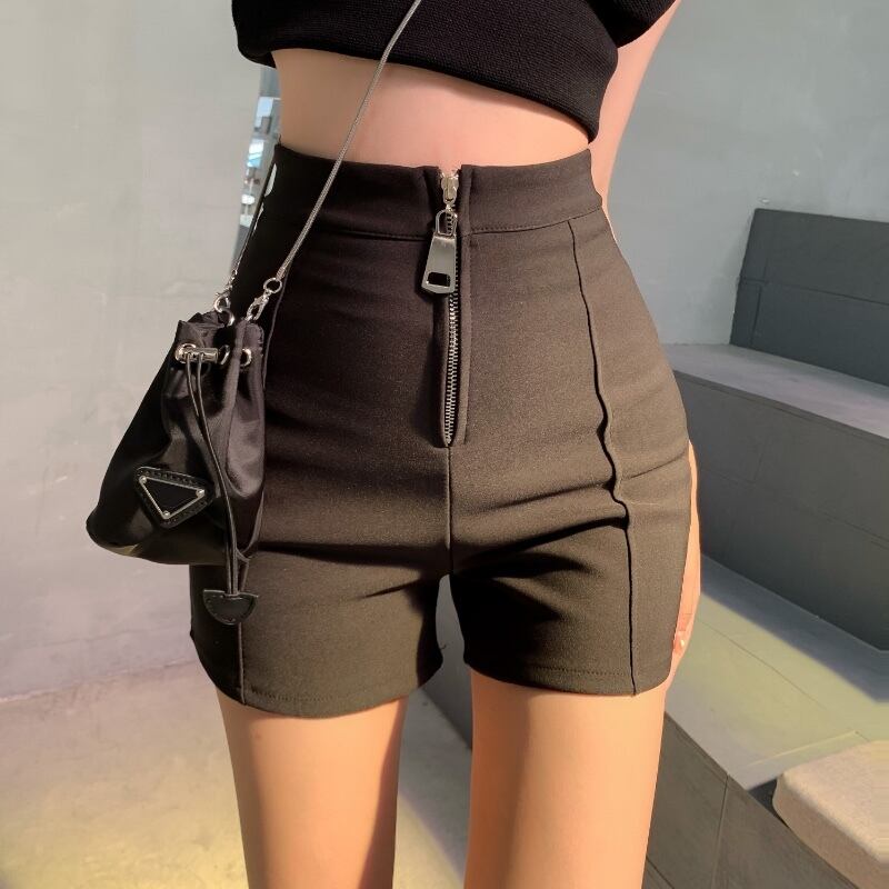 ショーツ サマージッパーハイウェストウェストブラックパンツ 薄手カジュアル 夏物 ブルマー Xiaofeijia18925325524