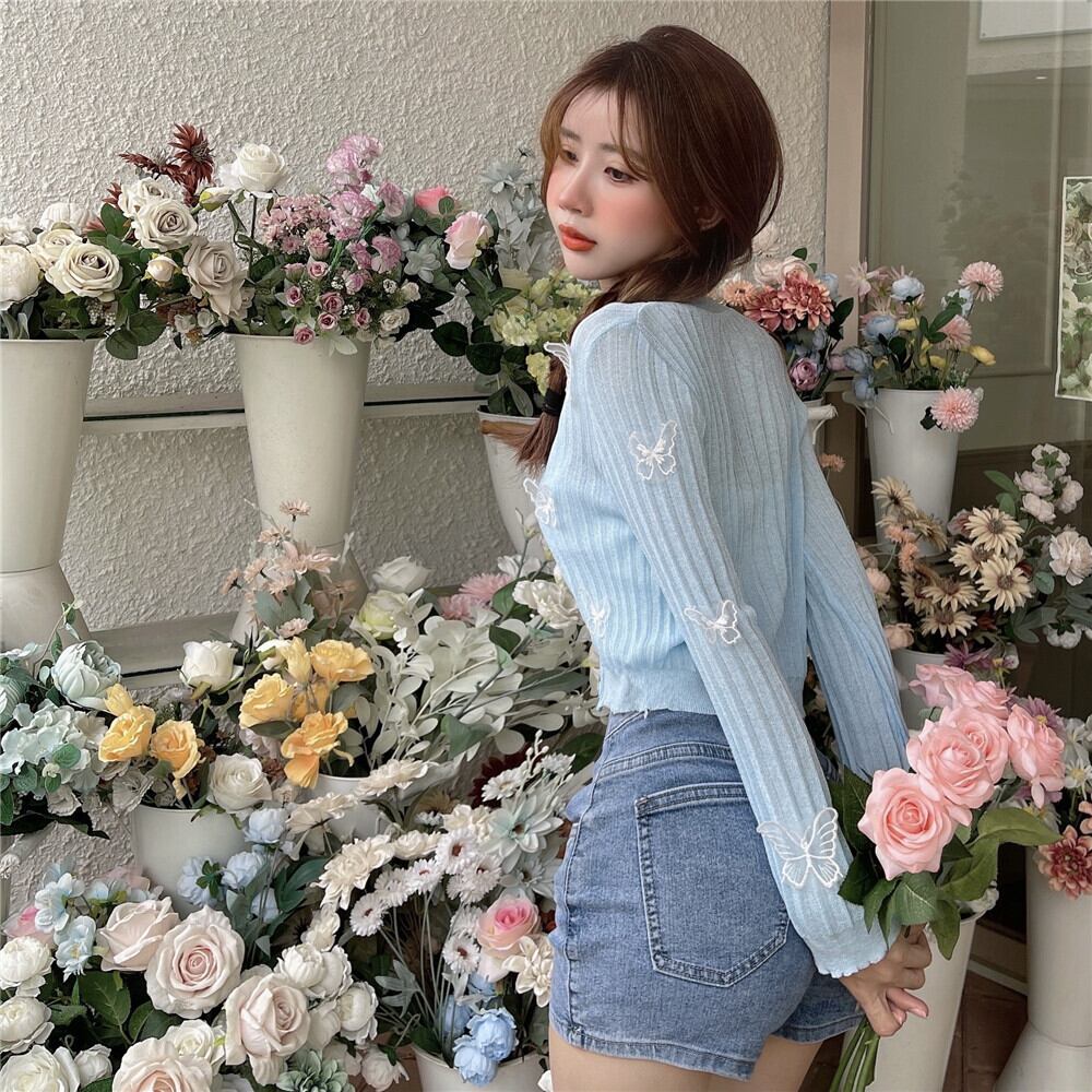 VネックButterflyデザイン 薄手カーディガン ロング Xiaofeijia79450067179