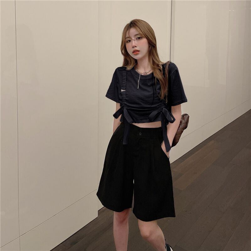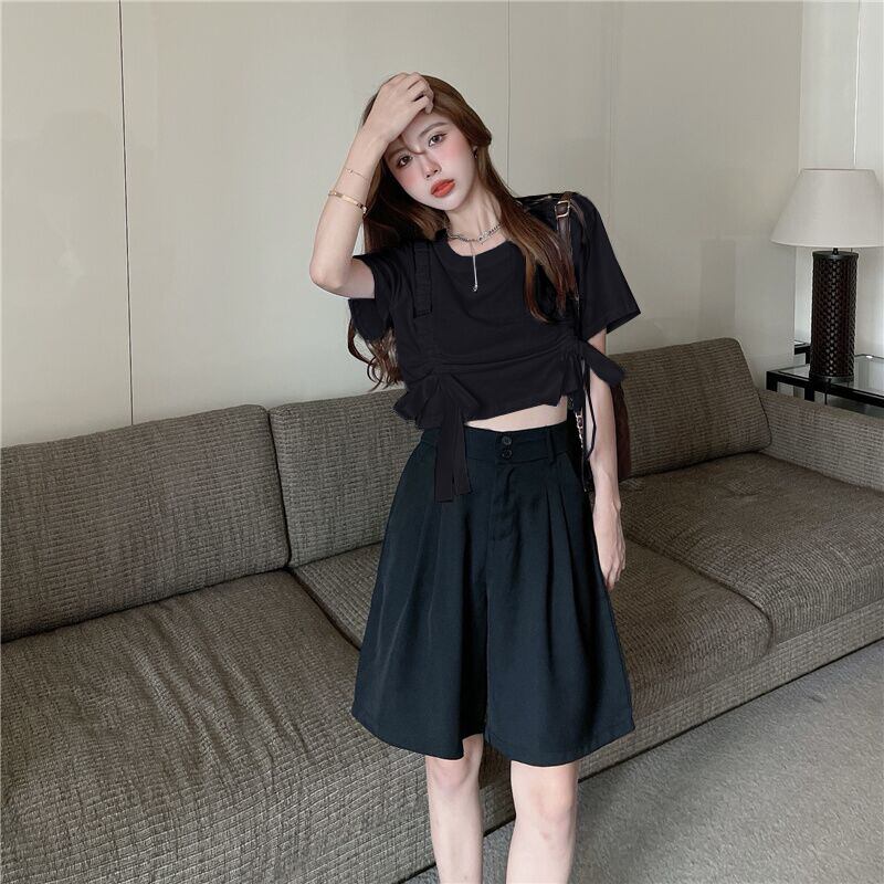 ルーズギャザートップス ウェストワイドレッグパンツ セット ワイドパンツ Xiaofeijia84531726655