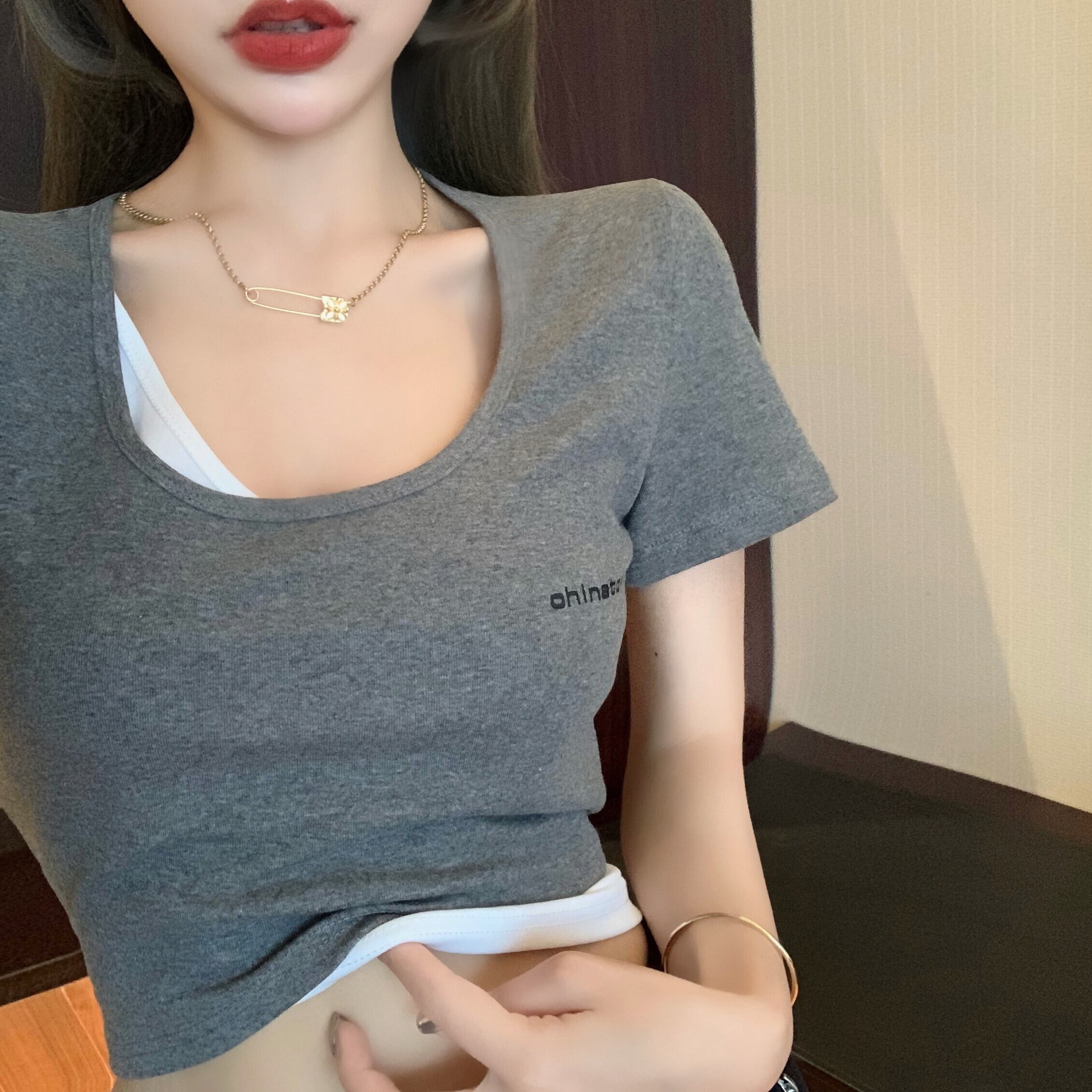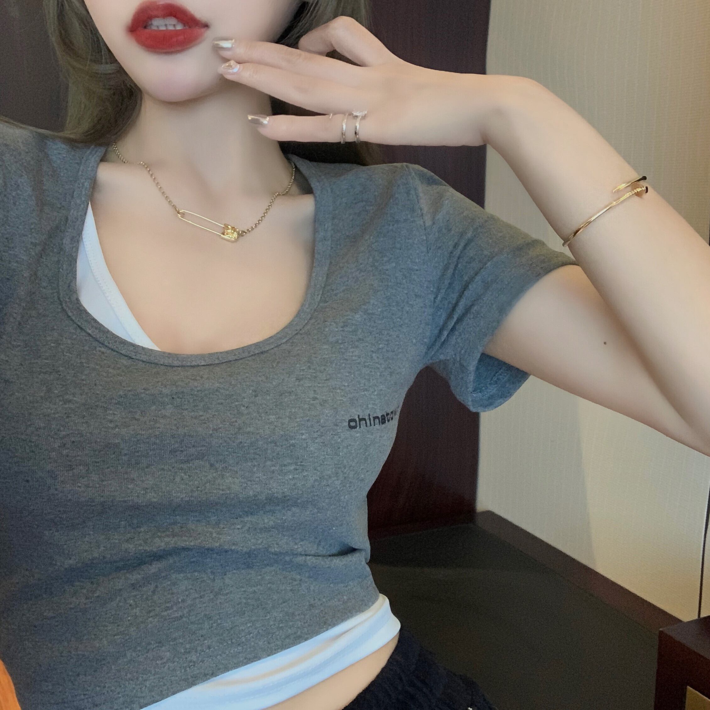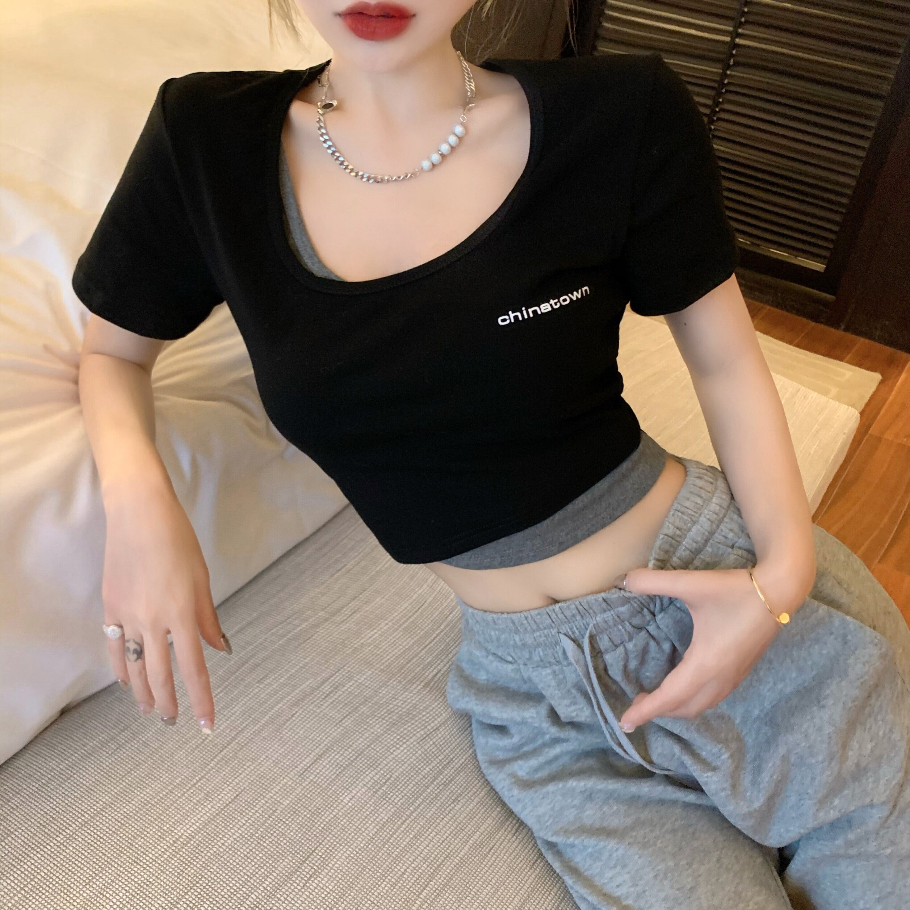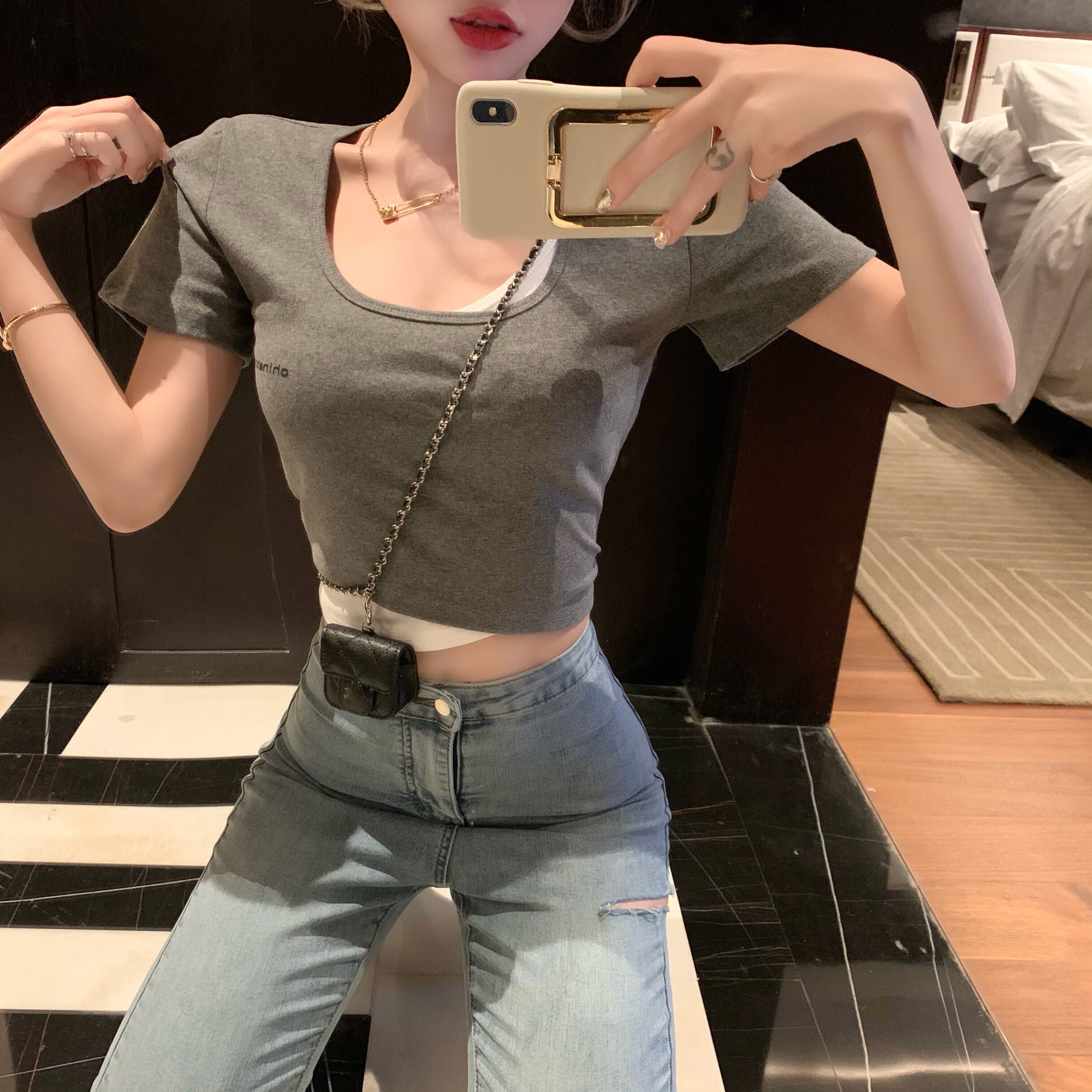 ショートTシャツ レディースサマーレッドハイウェストウェストトップス 夏物 Xiaofeijia89500712963