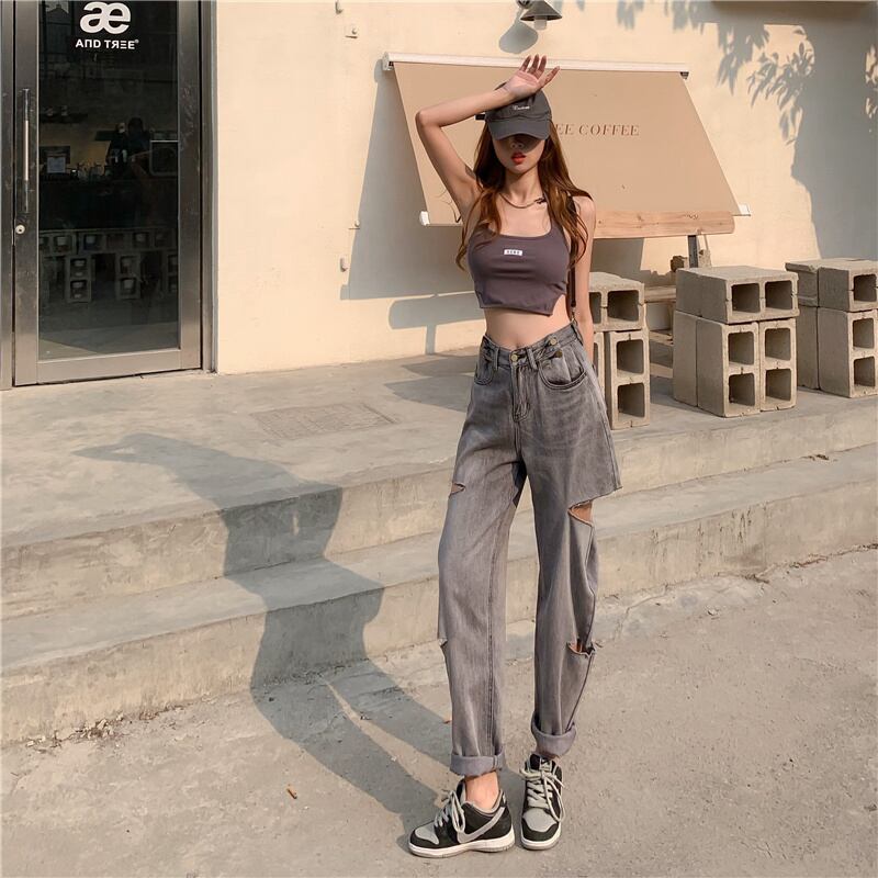 ジーンズ ハイウェストウェストワイドレッグルーズパンツ ワイドパンツ Xiaofeijia96211314634
