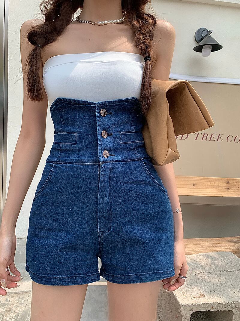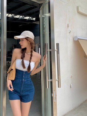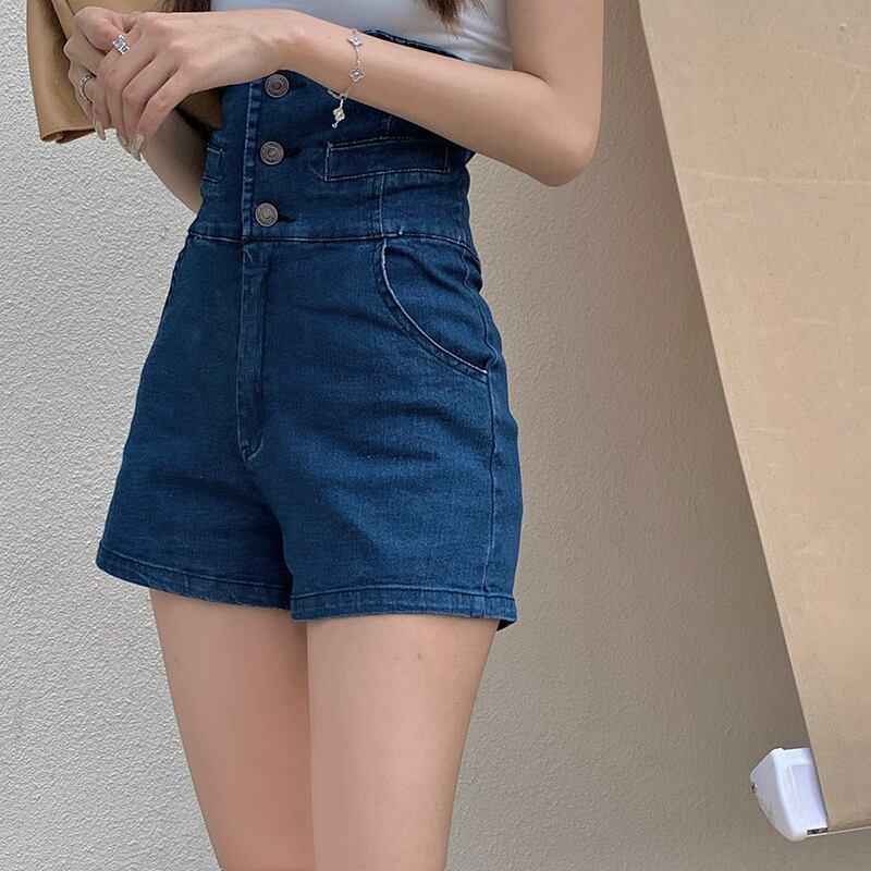 レッドショーツ サマーAラインハイウェストウェストパンツ 薄手ルーズジーンズ エラスティック 伸縮 夏物 ブルマー Xiaofeijia48354804931