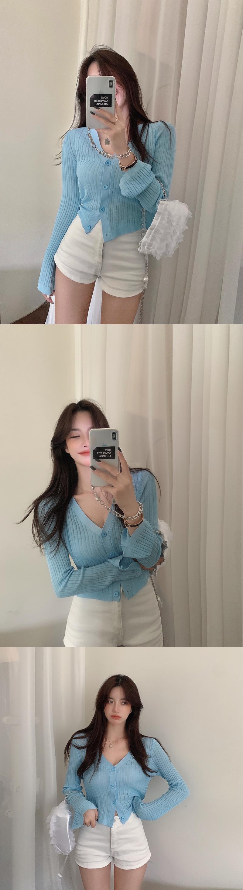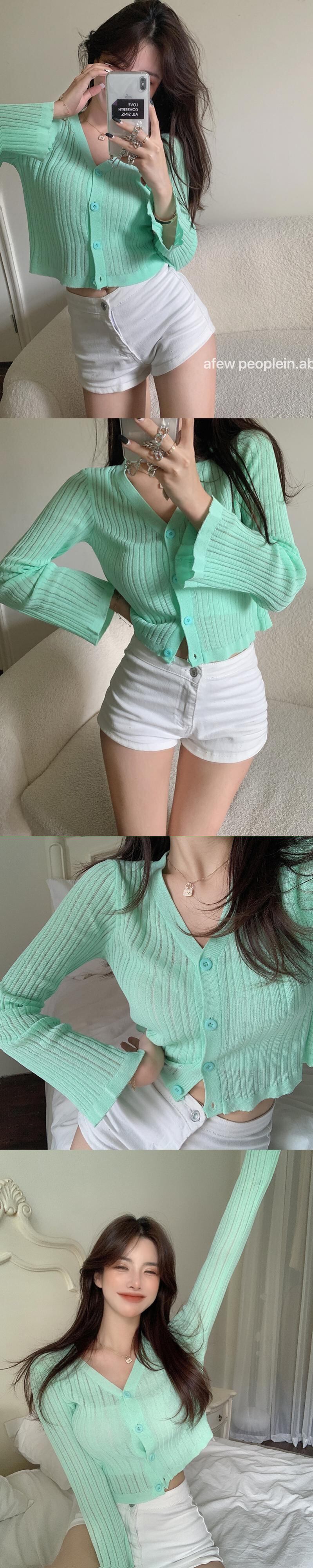 薄手サマーカーディガンVネックショートコート スプリングニットセーター トップス シャツ ロング 春物 夏物 Xiaofeijia39394312091