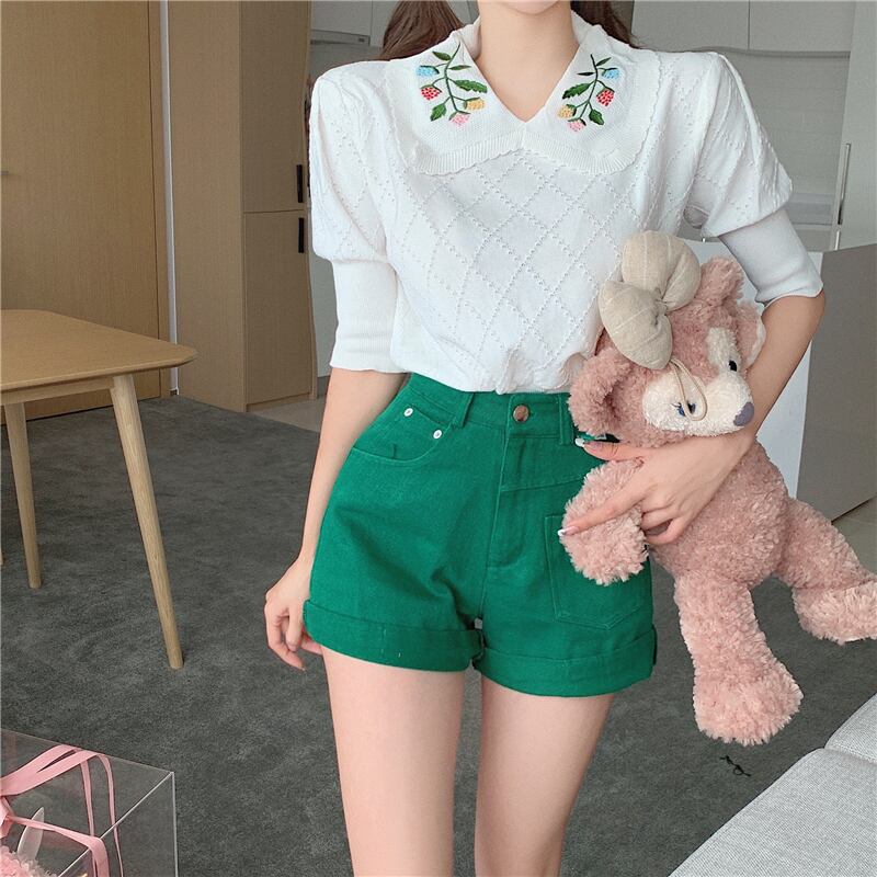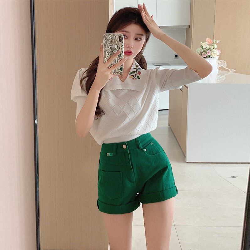 セーター 薄手トップス グリーンショーツ ハイウェストパンツ 大人ガーリー スウィート キュート カジュアル ブルマー Xiaofeijia84505242504