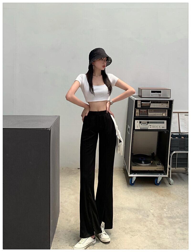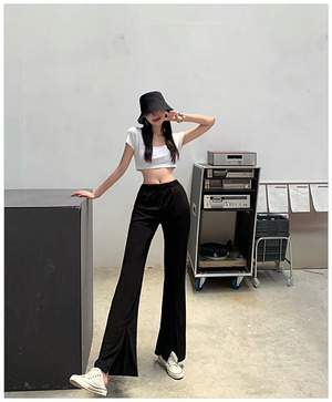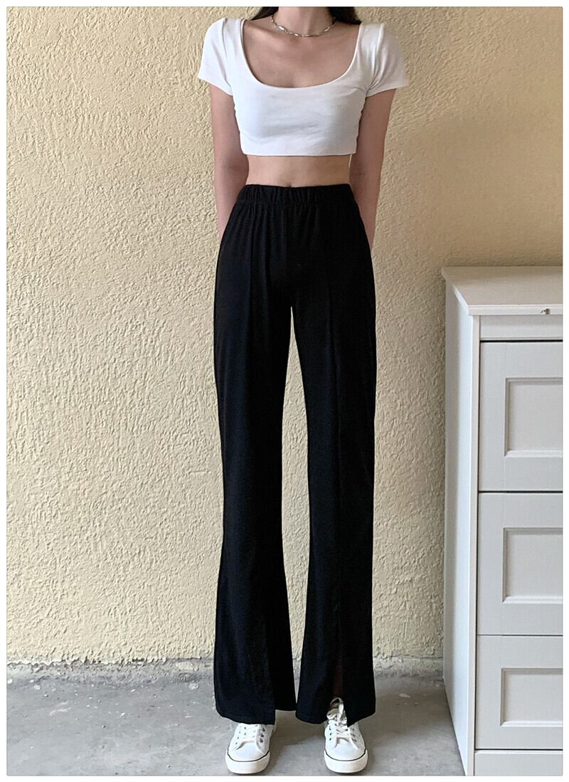 スタイルハイウェストウェストスリットカジュアルパンツ ルーズニット Xiaofeijia72056301659