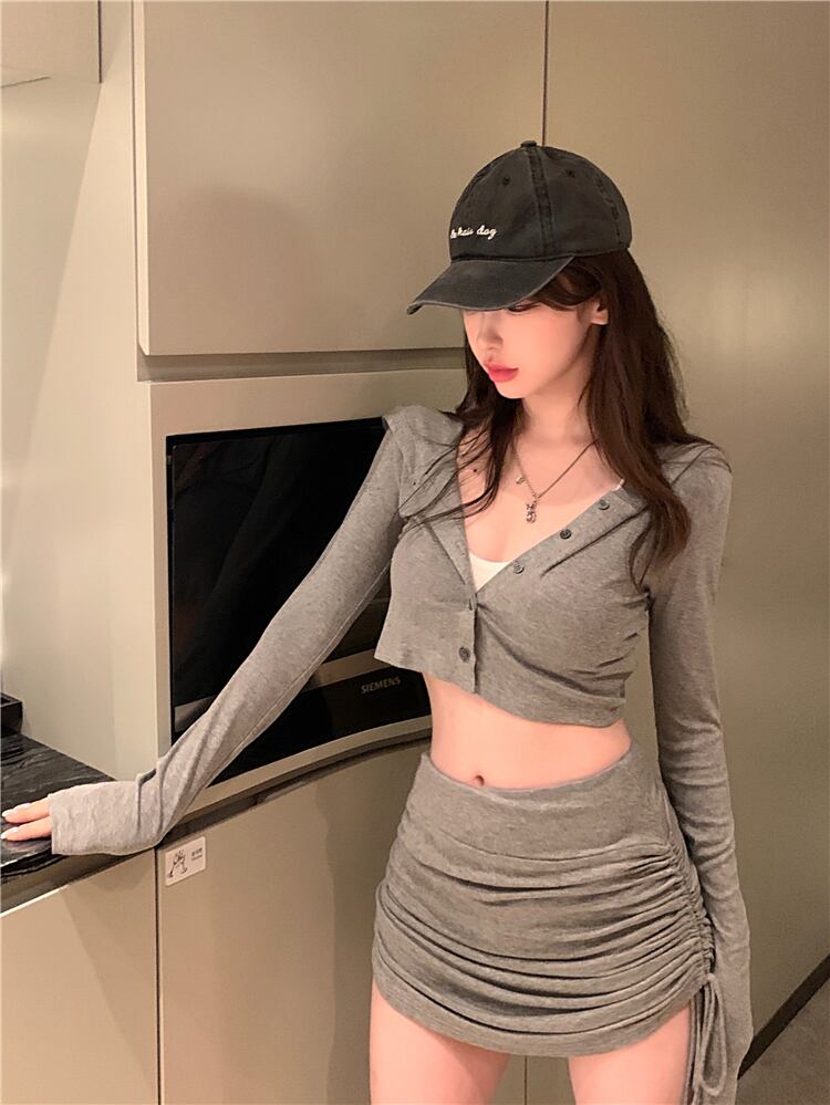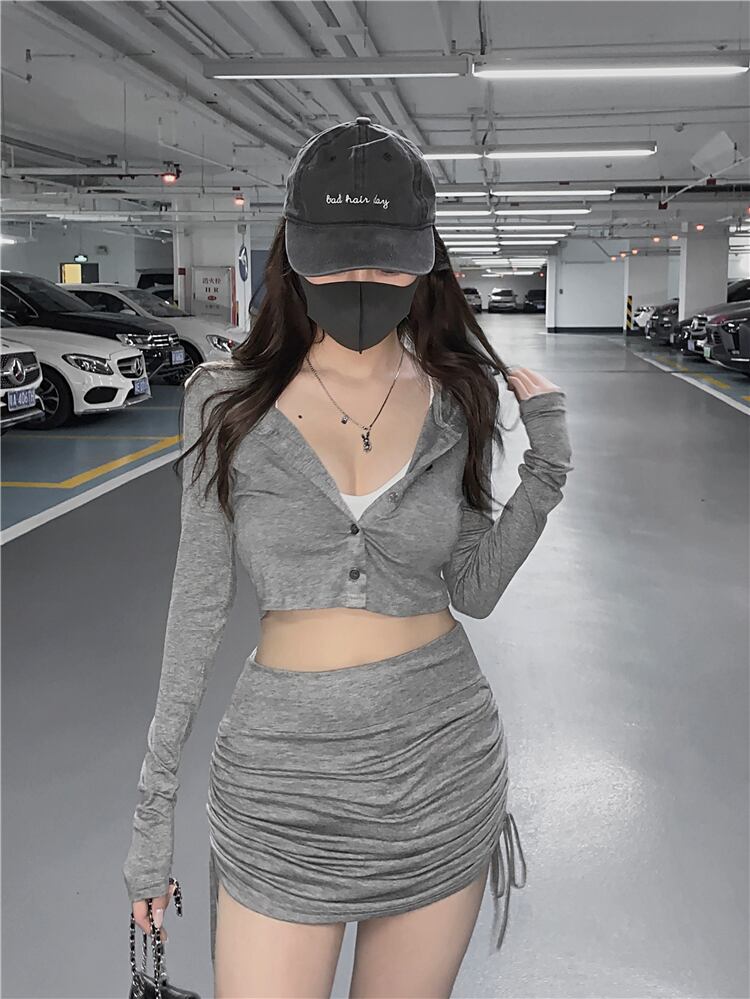 色:グレーのカーディガン,ブラックカーディガン,グレースカート,黒キュロット