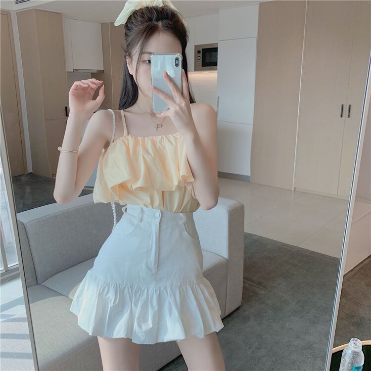 スカート サマートップス ハイウェスト薄手Aラインショート 大人ガーリー スウィート キュート カジュアル 夏物 オフショルダー Xiaofeijia45697337333