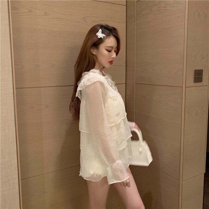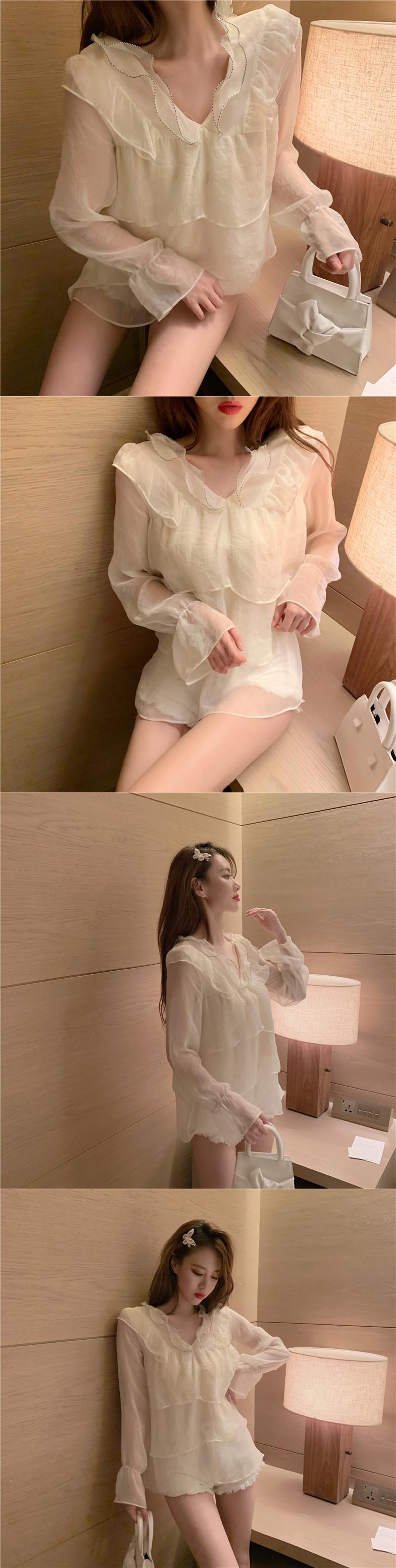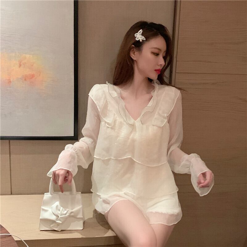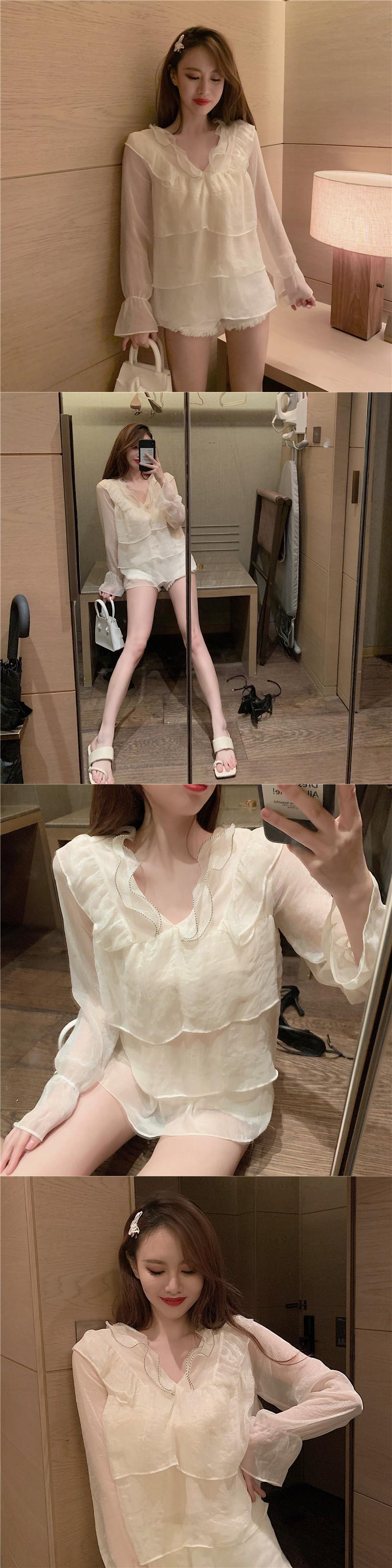 シフォンシャツ Vネック薄手トップス サマー ロング 夏物 Xiaofeijia90705818829