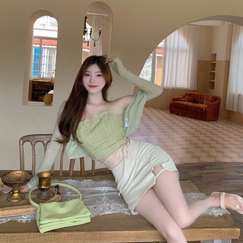 色:キャミソール,ミルクグリーンのカーディガン,米あんずスカート