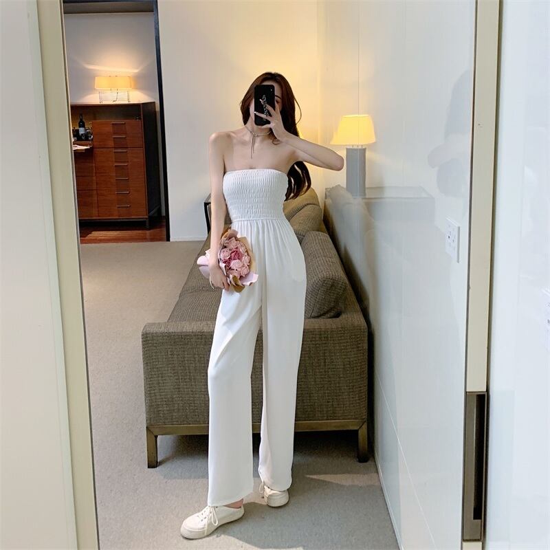 サマースタイルプリーツトップス スリムロングノースリーブハイウェストジャンプスーツ オールインワン レディース 長袖 夏物 Xiaofeijia63167945536