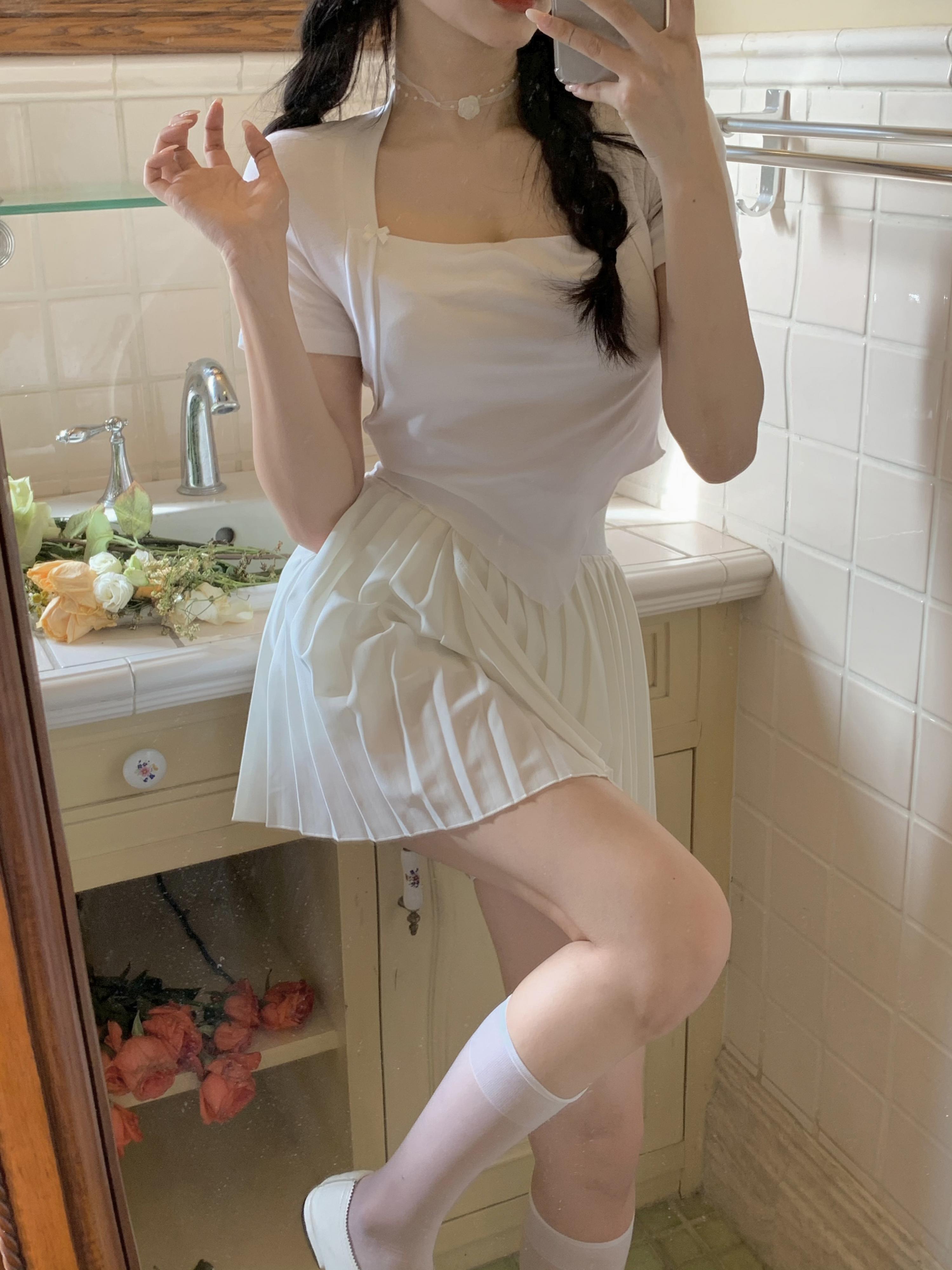 スカート サマーリボンTシャツ ハイウェストプリーツ 夏物 スクウェア Xiaofeijia30354633989
