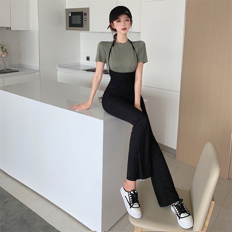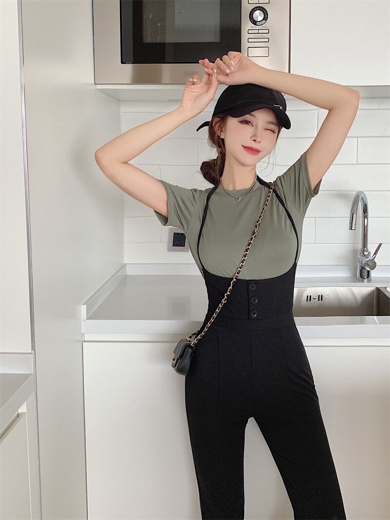 ラウンドネック半袖スリーブTシャツ スリムウェストロングパンツ ショート ハーフスリーブ Oネック Xiaofeijia56177434288