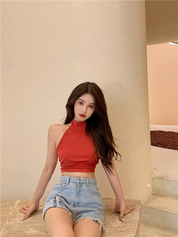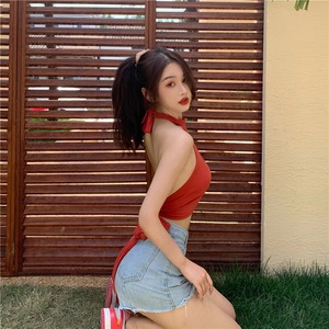 ノースリーブショートクロップドウェストホルタートップス ピュア Xiaofeijia4004198449