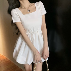 カラー半袖スリーブブラックドレス サマースタイルウェストスカート ショート ハーフスリーブ 夏物 スクウェア Xiaofeijia5234712556