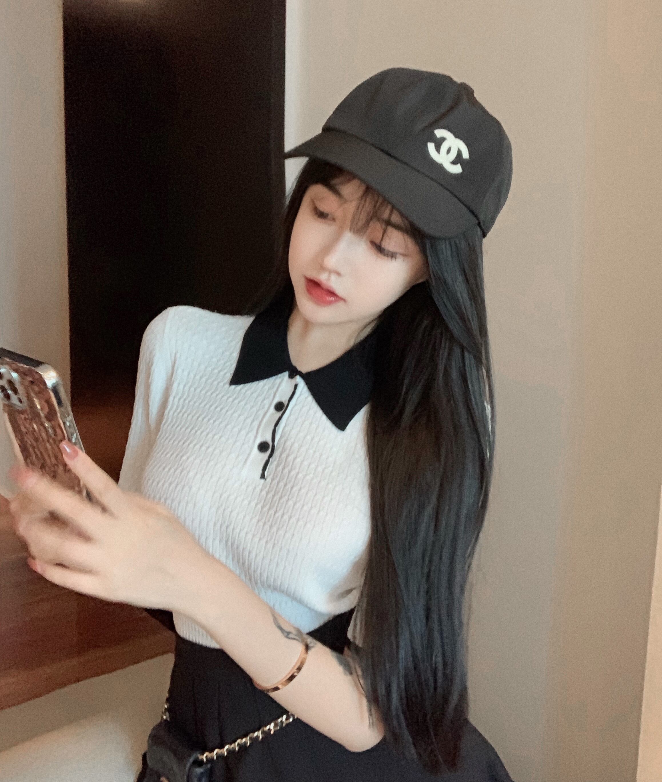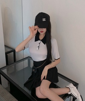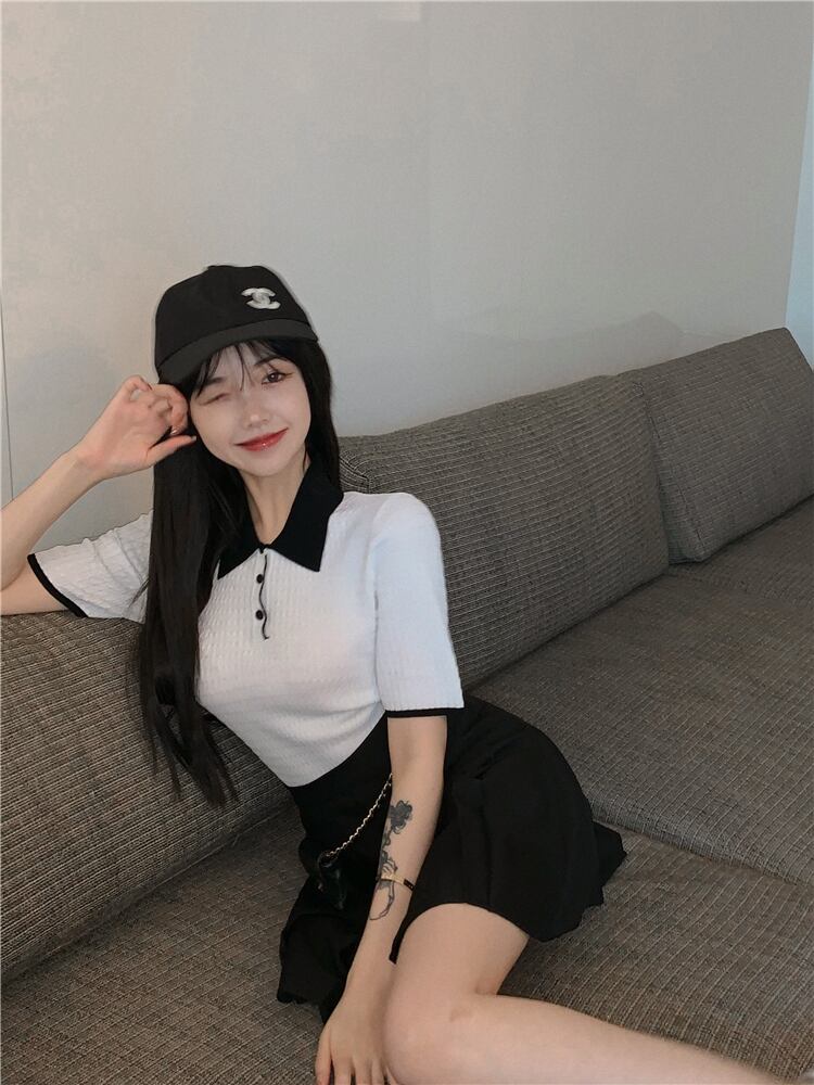 スカート カラーニットトップス プリーツサマー ストリート 夏物 Xiaofeijia70437806089