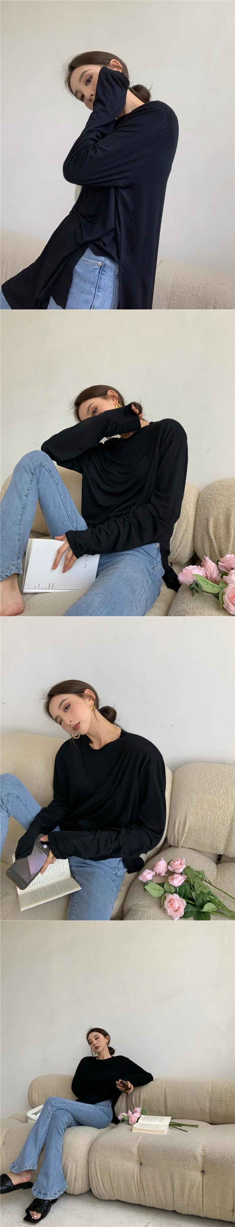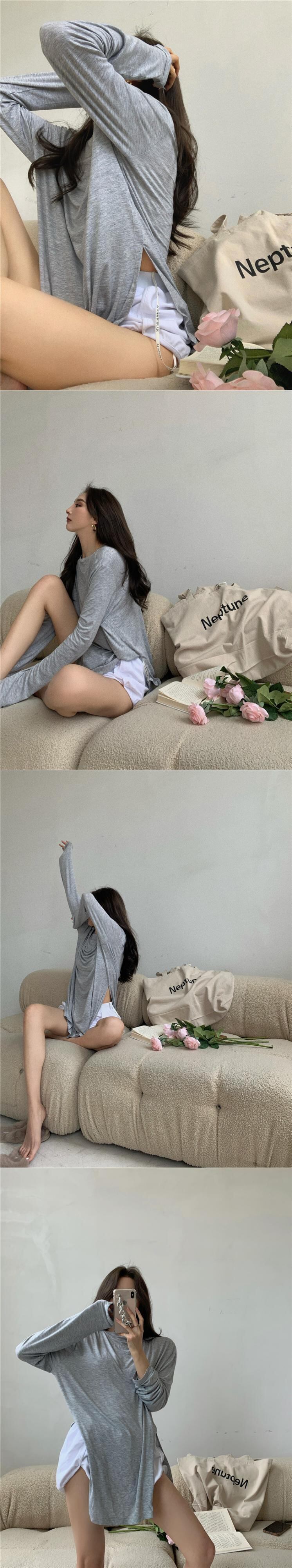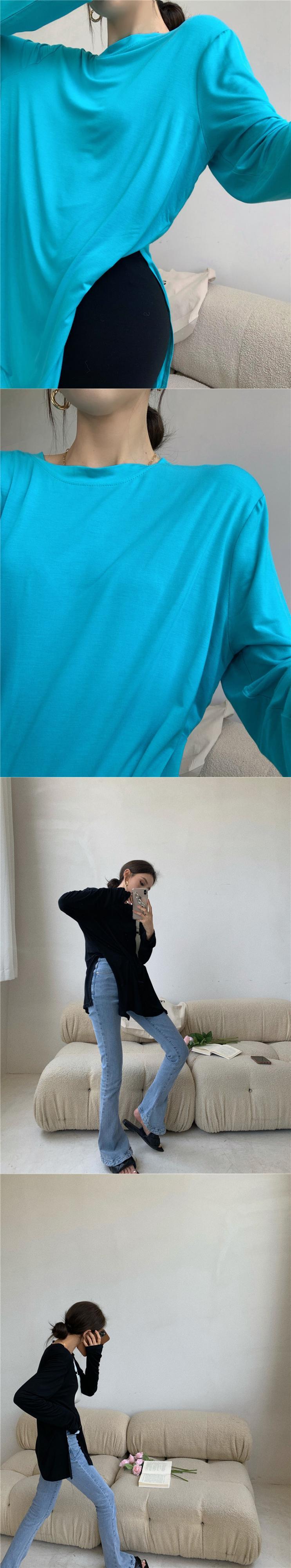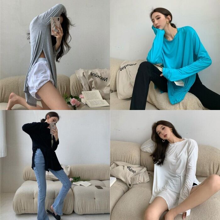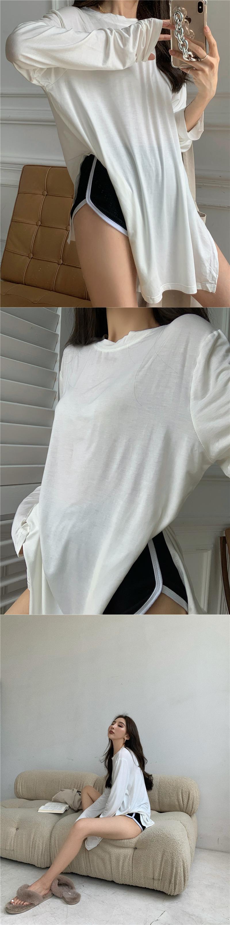 Tシャツ サマー薄手ラウンドネックルーズソリッド カラースリムブラウス トップス ロング 夏物 Oネック ソリッドカラー Xiaofeijia46752335175