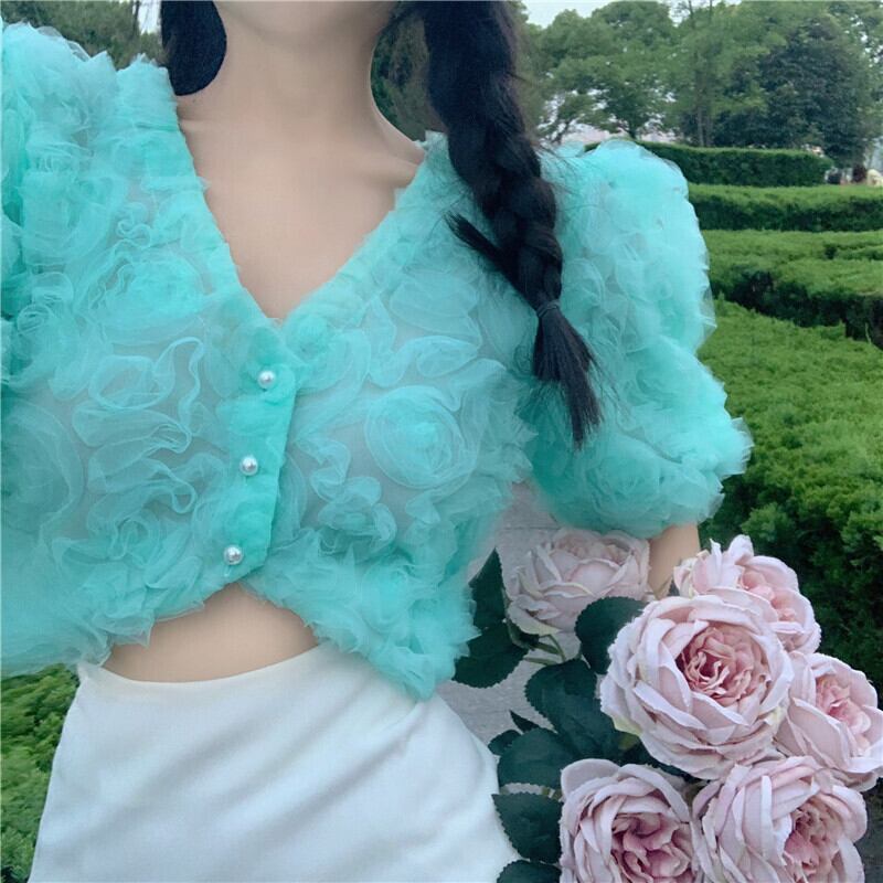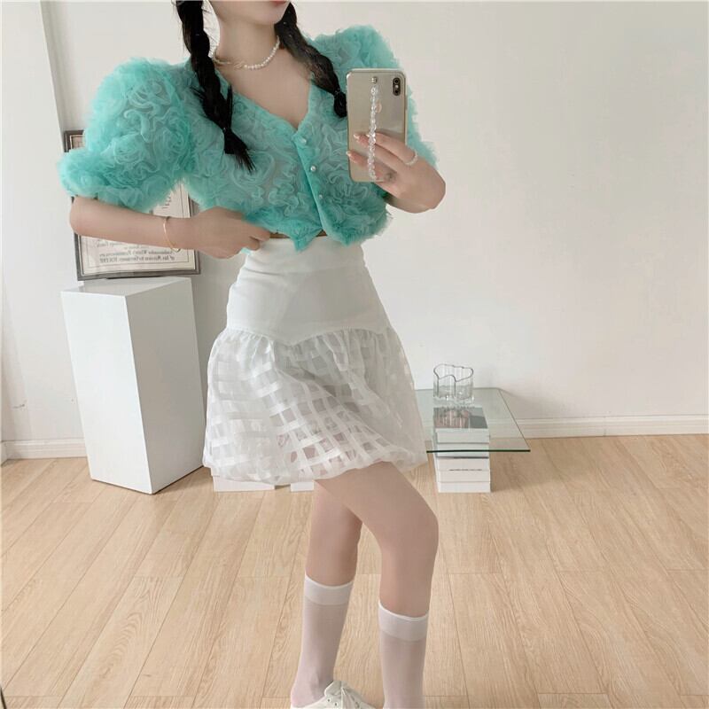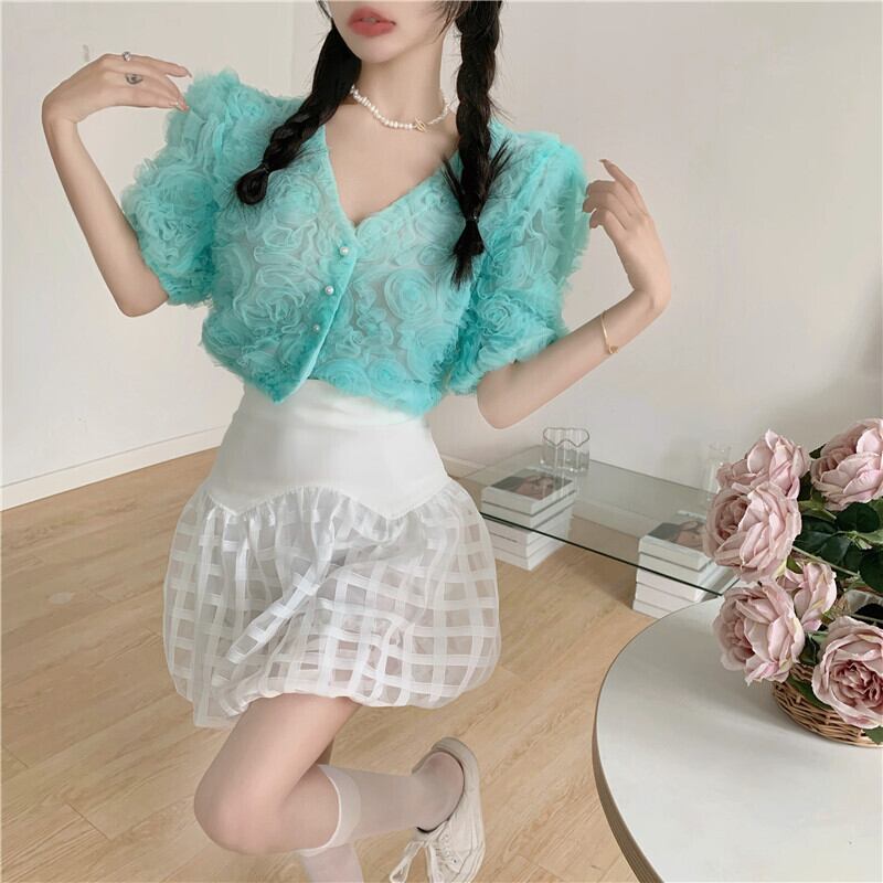 ショートカーディガントップス ウェスト薄手Flowerデザイン スカート レッド フラワーデザイン Xiaofeijia27477208857