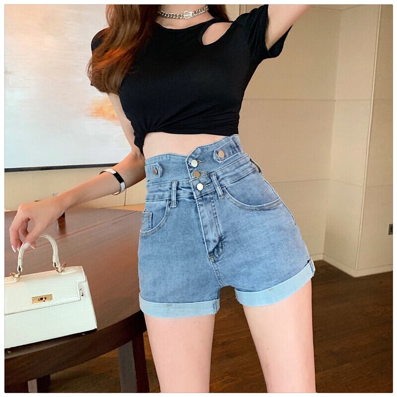 サマーハイウェストウェストストレッチショーツ スリムレディースパンツ エラスティック 伸縮 夏物 ブルマー Xiaofeijia34043395632