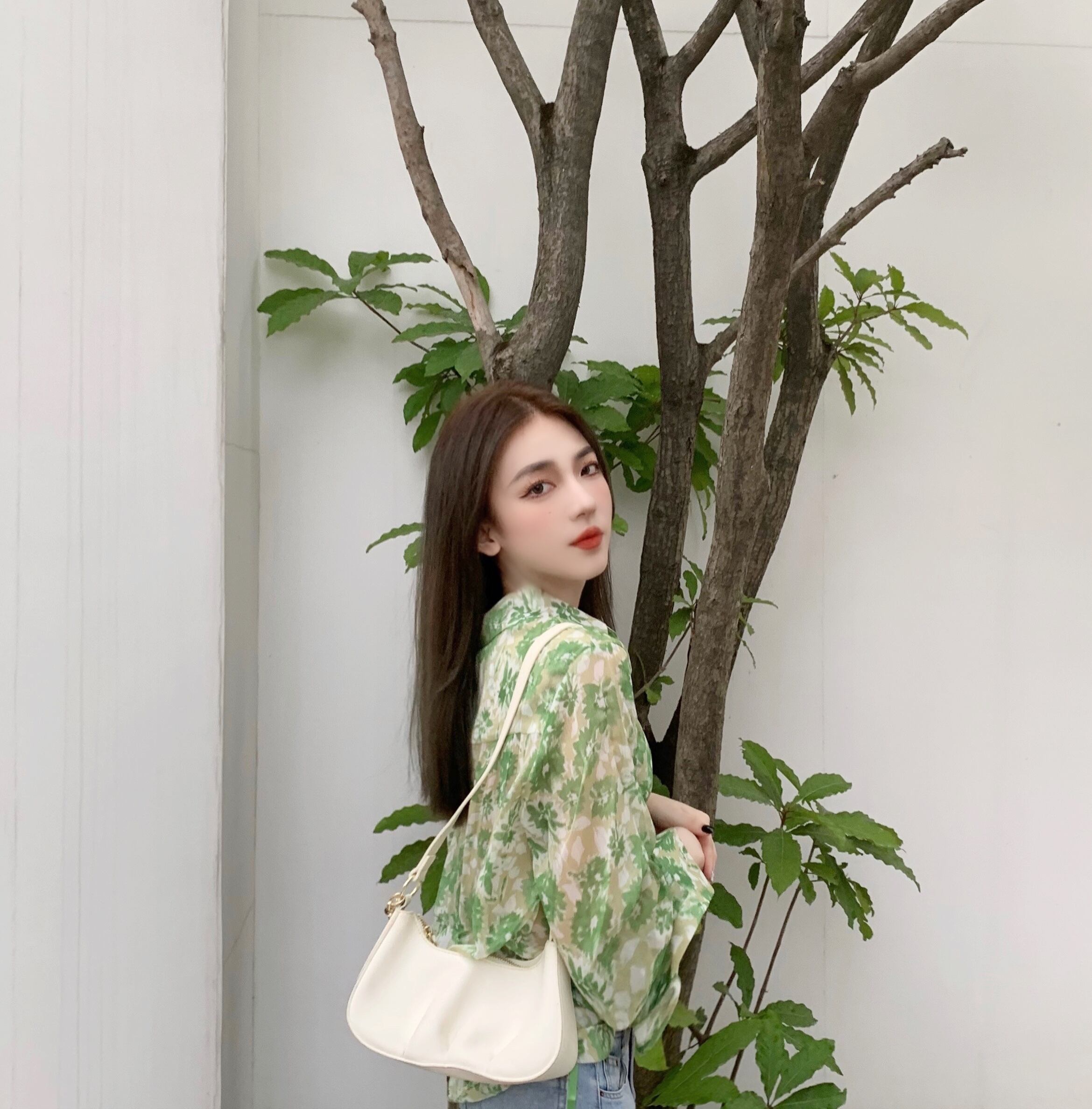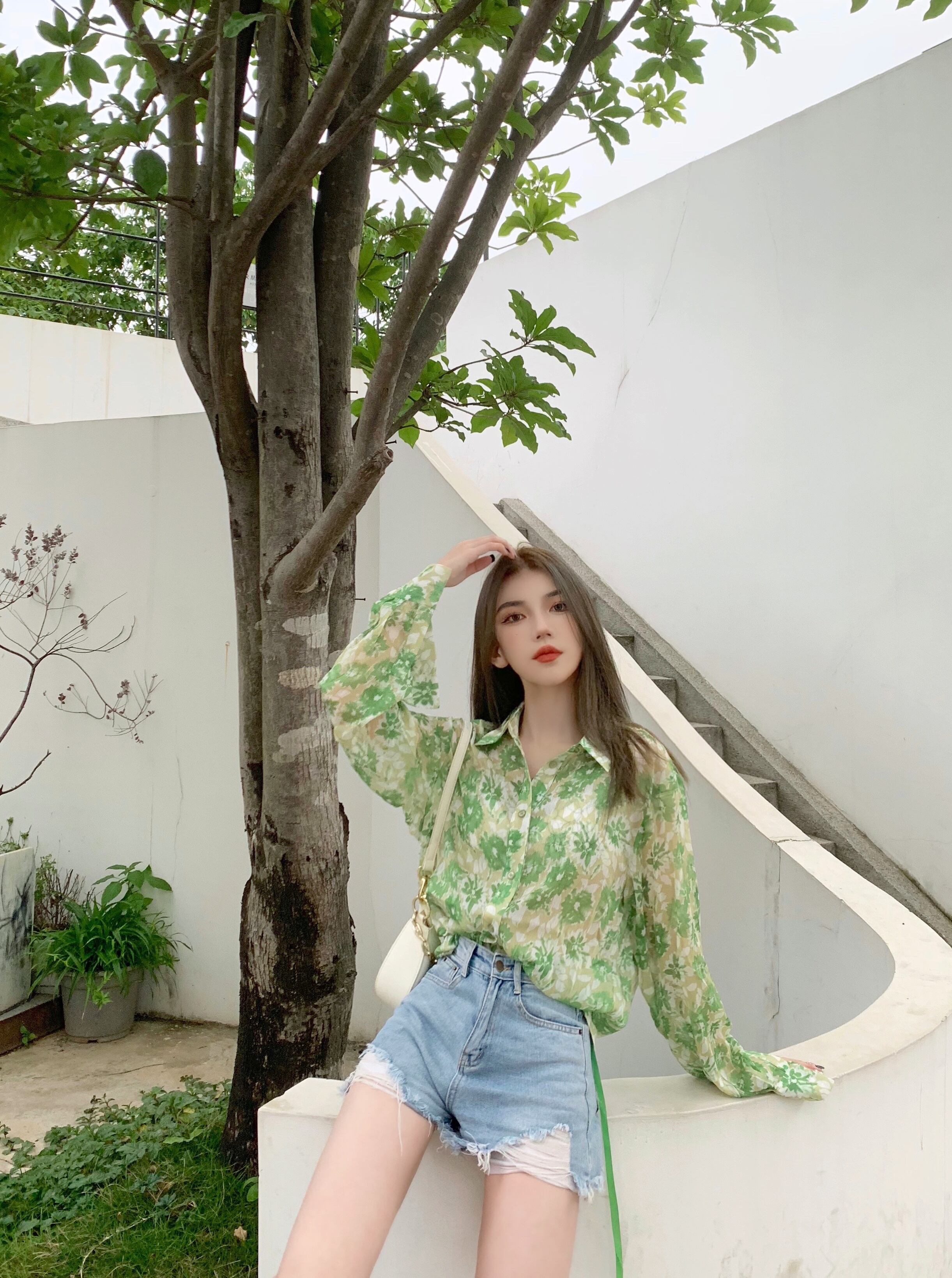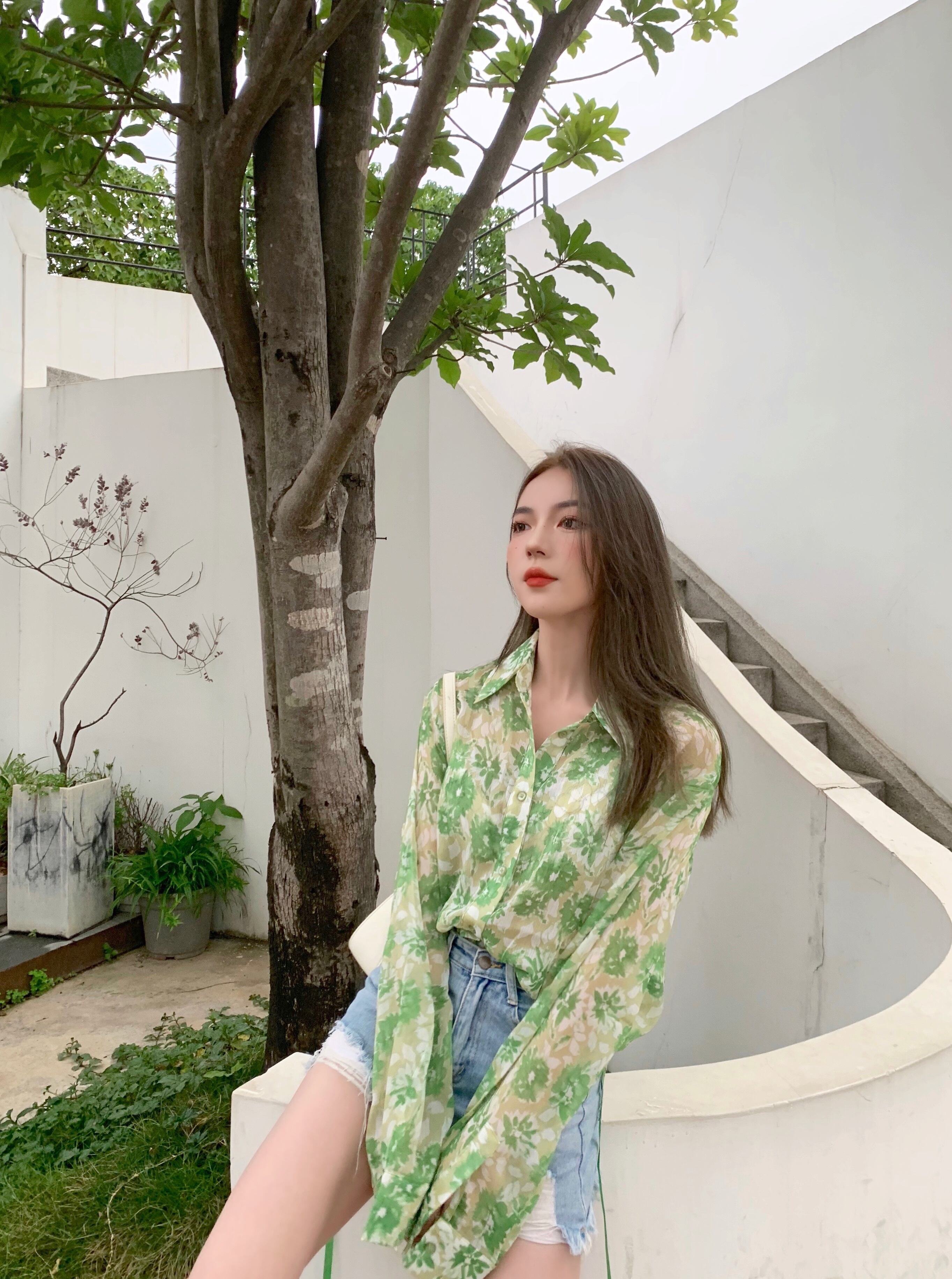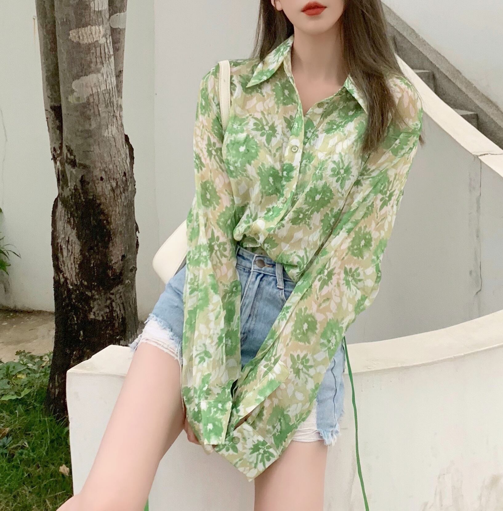 スタイルルーズフローラルシャツ トップス ロング 花柄 Xiaofeijia54475118399