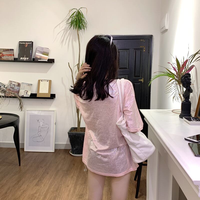 ルーズレッドTシャツ レディースショート 半袖 ハーフスリーブ Xiaofeijia27547983809