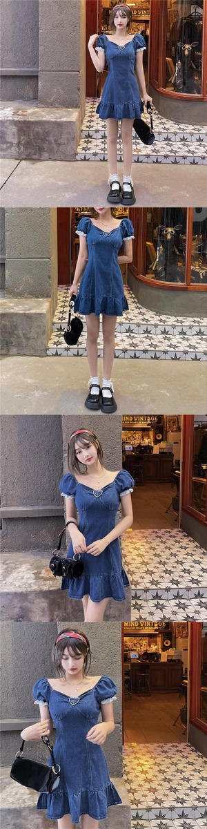 色:レース,デニムブレストラップ,デニムドレス