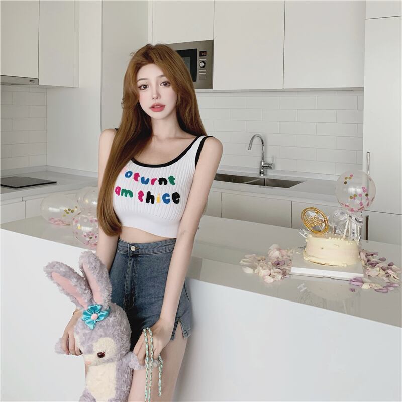 カラートップス サマーバックショートノースリーブニット レッド 刺繍 大人ガーリー スウィート キュート カジュアル 夏物 Xiaofeijia26673004921