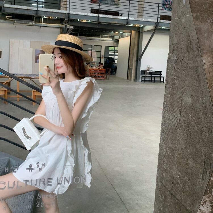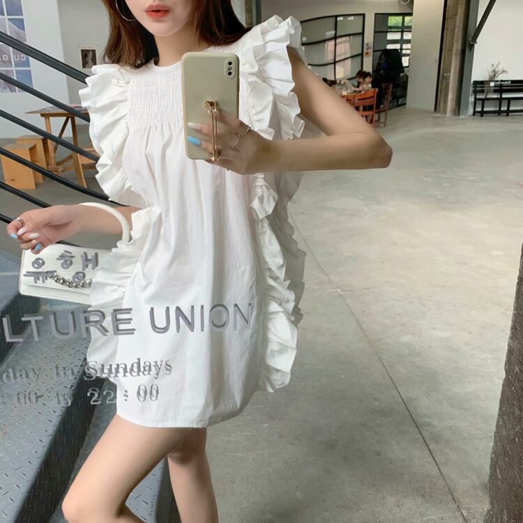 サマースタイルホワイトスカート ノースリーブドレス ショート 夏物 Xiaofeijia40495880605