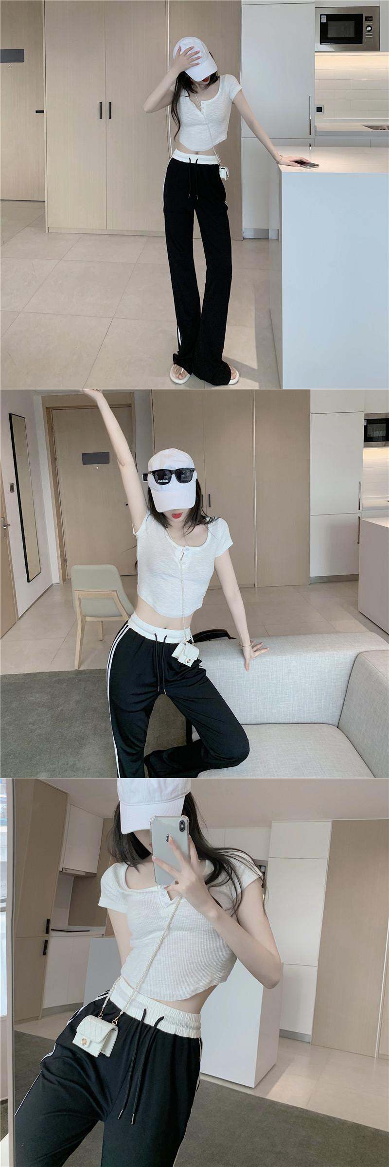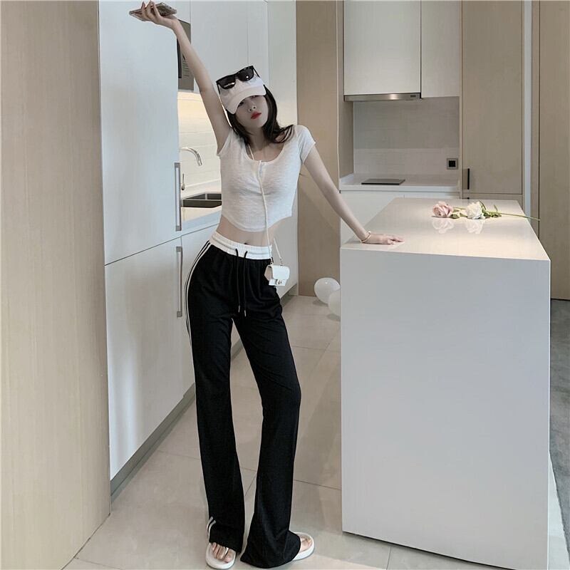 パンツ サマーカジュアル薄手サイドストライプギャザーハイウェストウェスト 夏物 Xiaofeijia92717438619