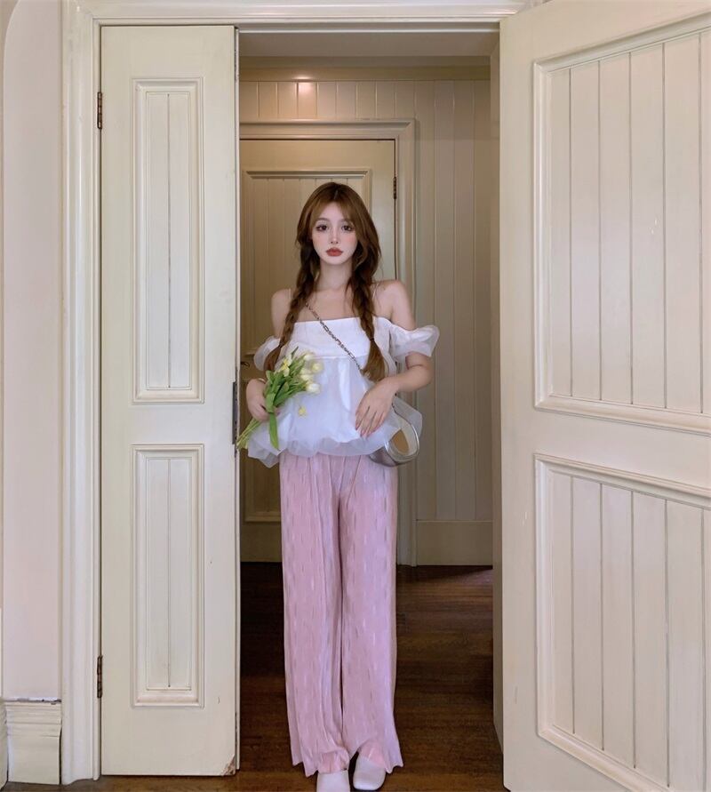 ジャケット サマーハイウェストウェストワイドレッグ 大人ガーリー スウィート キュート カジュアル 夏物 ワイドパンツ Xiaofeijia16330687987