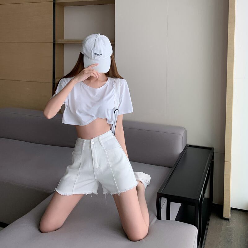サマーハイウェストジーンズ レディースパンツ 薄手Aラインブラックショーツ 夏物 ブルマー Xiaofeijia85985712273