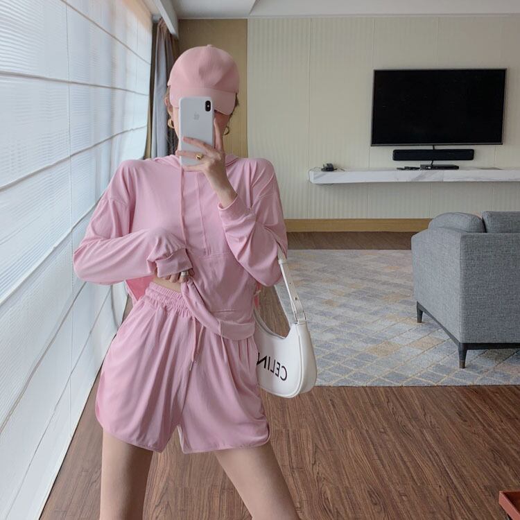 色:ピンクトップ,グレートップ,ピンクのショートパンツ,グレーのショートパンツ