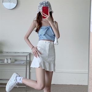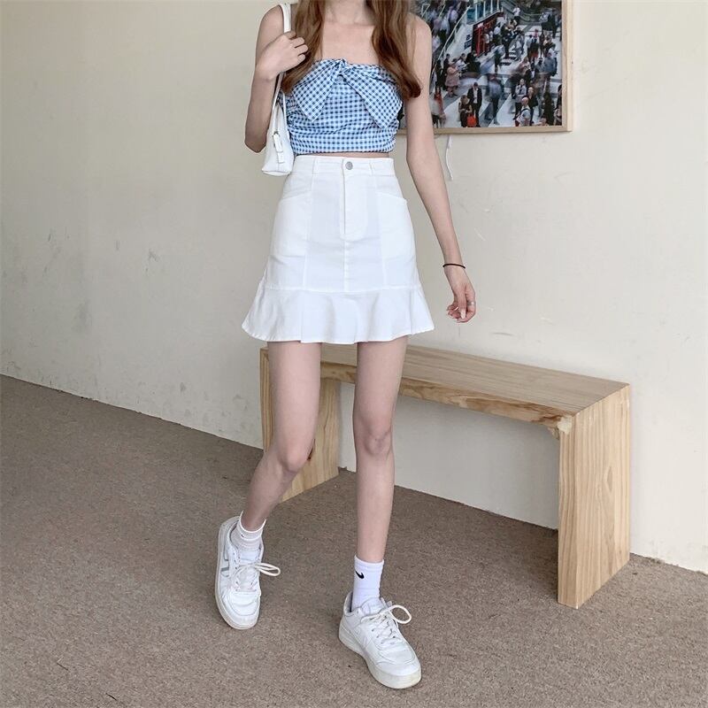 ハイウェストウェストホワイトスカート サマーAライン 夏物 Xiaofeijia72487748384