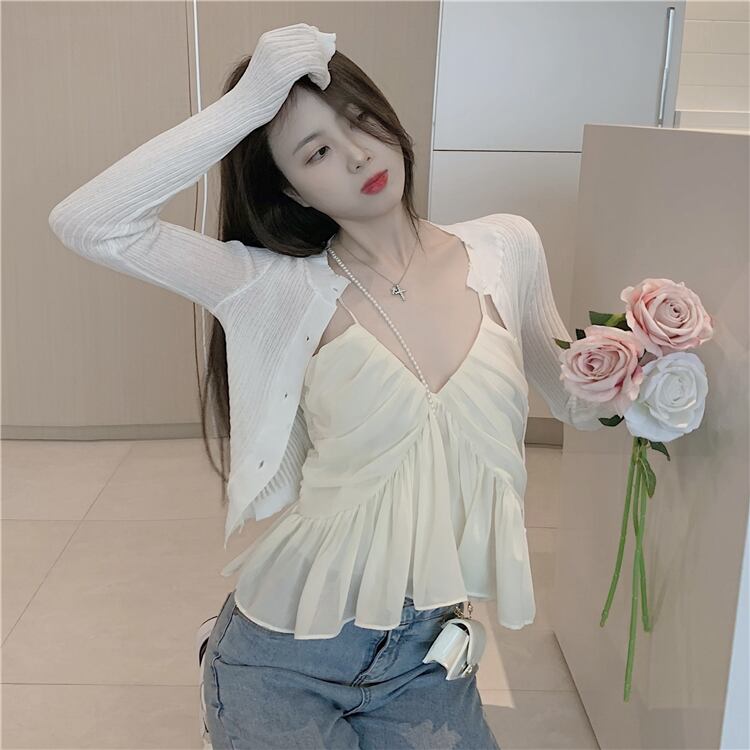 レディースニットカーディガンサマーウェストトップス ショートシャツ 夏物 Xiaofeijia67554125637