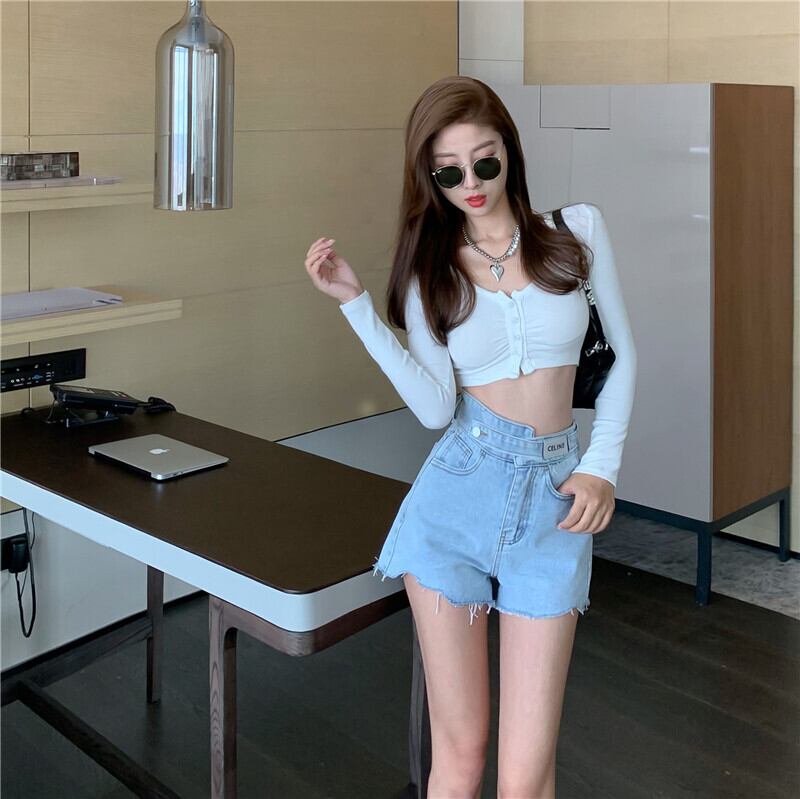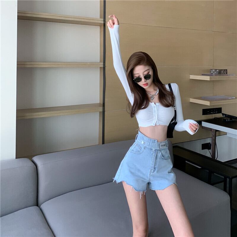 ブルーハイウェストショーツ サマーレッドパンツ ルーズ 夏物 ブルマー Xiaofeijia80504234715