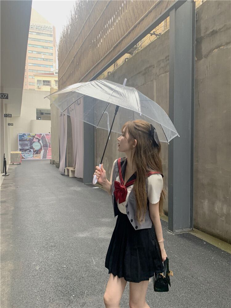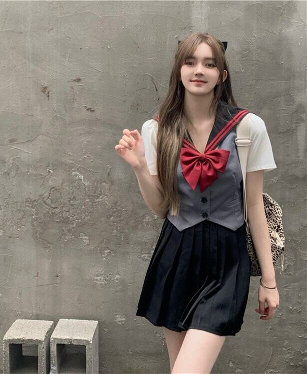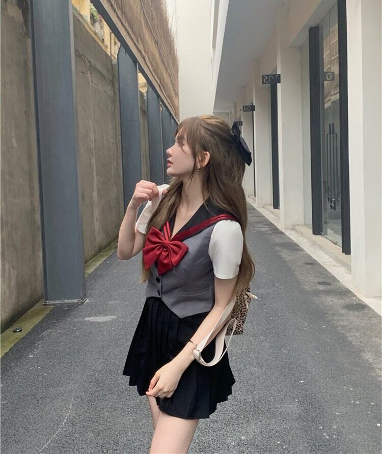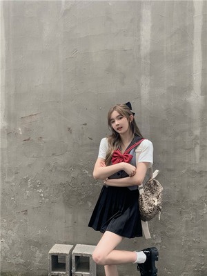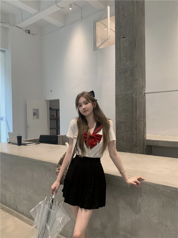 スタイルプリーツスカート ショートリボンネイビーカラーシャツ サマー 夏物 Xiaofeijia26055637857