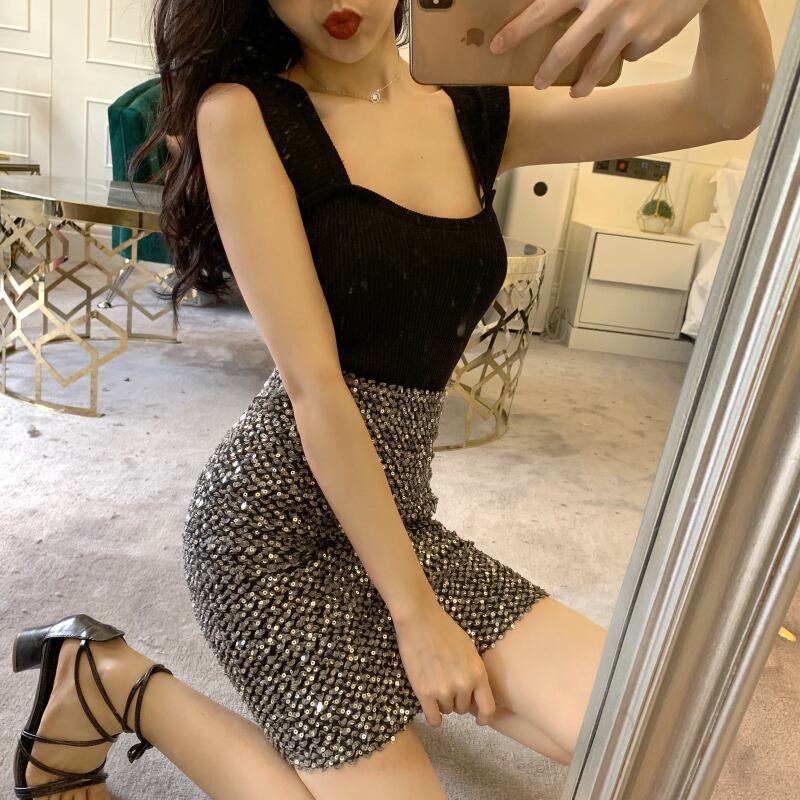 ニットノースリーブショートシャツ サマー 夏物 スクウェア Xiaofeijia15343461491