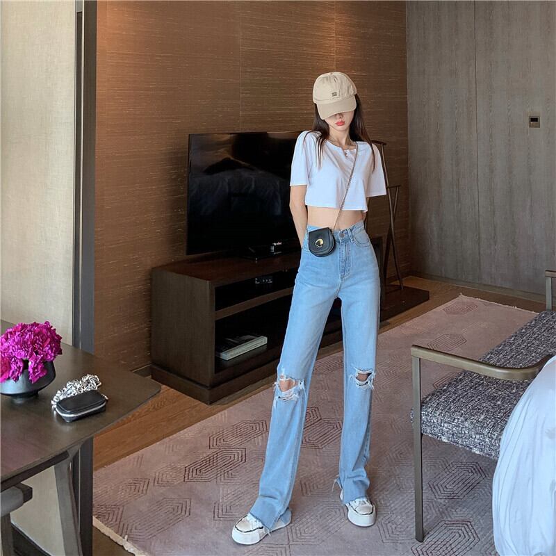 ジーンズ ルーズサマーハイウェスト薄手 レッド 夏物 Xiaofeijia68905332237