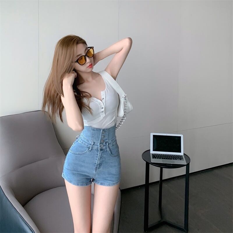 ハイウェストウェストシングルブレストショーツ 薄手サマーパンツ 夏物 ブルマー Xiaofeijia55840040536